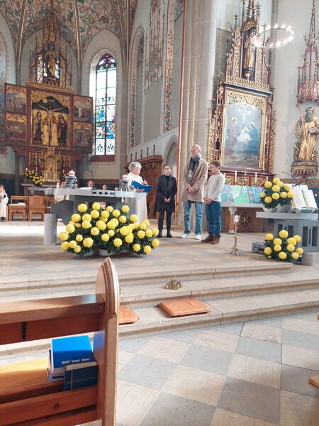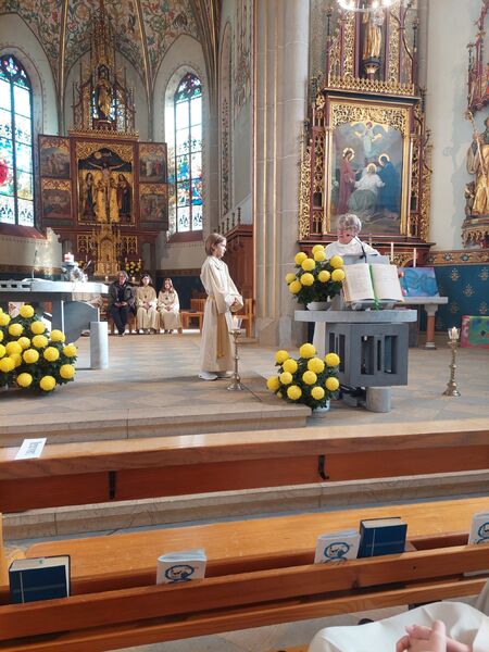 Am Christkönigssonntag wurde ein feierlicher Gottesdienst gefeiert, traditionell mit vielen Ministrantinnen und Ministranten zur Aufnahme neuer Minis und der Verabschiedung scheidender Minis.Mit Carmen wurde eine lebhafte und interessierte Ministrantin aufgenommen - verabschieden mussten wir uns von drei langjährigen, engagnierten Mins: Julian, Elias und Maria.Ihnen auch an dieser Stelle noch einmal viel Glück und Freude im Beruf, im Sport und allem, was ihr anpackt.