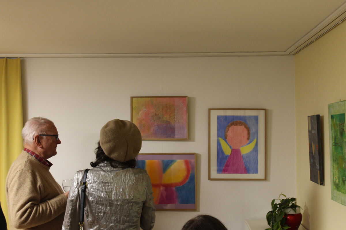 Am Freitag 29. November fand im Offenen Haus die Vernissage der aktuellen Bilderausstellung des ARTeliers statt. Die Stimmung war gut und es waren ca. 35 Personen anwesend. Die musikalische Begleitung des offiziellen Teils durch Roland Büchel (Hackbrett) und Peter Rohner (Klavier) rundete den Anlass gebührend ab. Beim gemeinsamen Apèro wurde über die Bilder sinniert und die anwesenden Kunstschaffenden erzählten Geschichten über ihre Werke. Der Sozialdienst und Offenes Haus bedanken sich bei allen beteiligten Personen, insbesondere bei Kathrin Thurnherr, der Leiterin des ARTeliers, welche die Ausstellung begleitet. Die Ausstellung kann noch bis zum 20. Juni 2025 während den Durchführungsterminen des ARTeliers ohne Anmeldung besichtigt werden (siehe kathsg.ch/artelier). Die ausgestellten Werke können zu einem fairen Preis gekauft werden, wobei der gesamte Erlös an die jeweilige Künstlerin/Künstler fliesst.