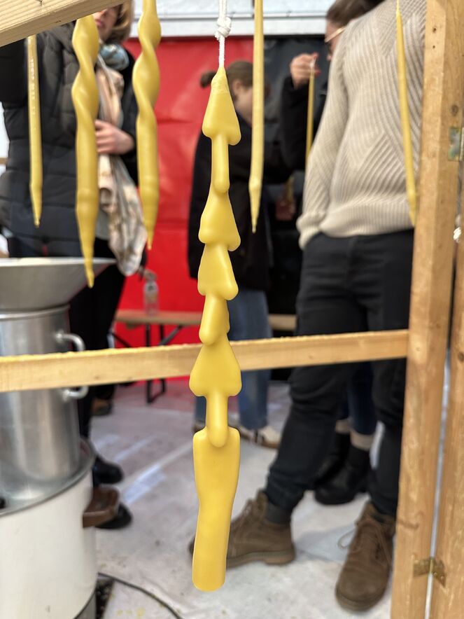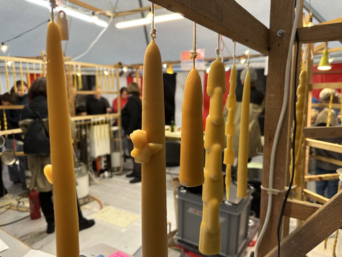 Seit über einer Woche sind Freiwillige und Mitarbeitende der Cityseelsorge und der AKJ jeden Tag im Kerzenzelt auf dem Kornhausplatz am Bahnhof anzutreffen, um Interessierten ein wunderbar adventliches Erlebnis zu ermöglichen: das Kerzenziehen. Es ist eine gute Möglichkeit, um runterzufahren und zu entschleunigen. Das Kerzenziehen ist eine Tätigkeit, die viel Geduld braucht und bei der man Warten können muss. Das schafft ganz automatisch eine Haltung der Entschleunigung und das ist im Zelt auch wahrnehmbar.