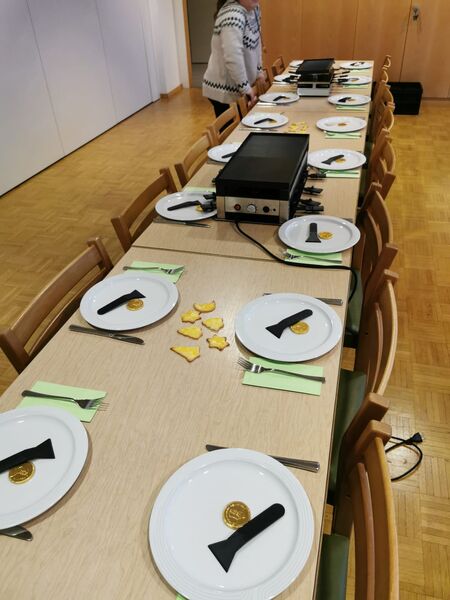Der Abend begann mit einem kreativen Bastelprojekt: Jede gestaltete eine individuelle Kerze, die mit viel Liebe und Kreativität zu einem einzigartigen Kunstwerk wurde. Anschliessend ging es in die Küche, wo alle gemeinsam die Zutaten für ein gemütliches Pizzaöfeli-Essen vorbereiteten. Jede hatte eine Aufgabe - sei es das Schneiden von Gemüse, das Vorbereiten des Fleisches oder das Bereitstellen des Rimuss.