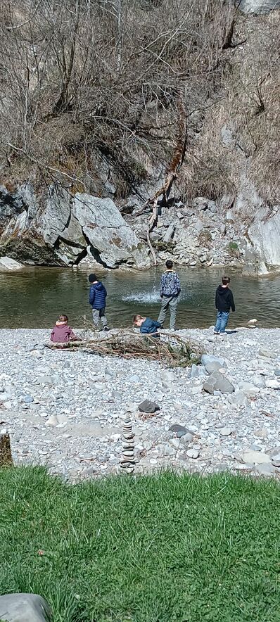 Zwischen den Hauptaktionen blieb genug Zeit für kleine Abenteuer. Kunstvolle Steinmännchen wuchsen in die Höhe, flache Steine flitzten über die Wasseroberfläche, und besondere Kieselsteine wurden stolz herumgezeigt. In einer Ecke tanzten und sangen einige Kinder ausgelassen, während andere noch ums Feuer sassen. Gemeinsam haben wir noch zwei runde Bulldogge, das KILA-Spiel, gespielt.