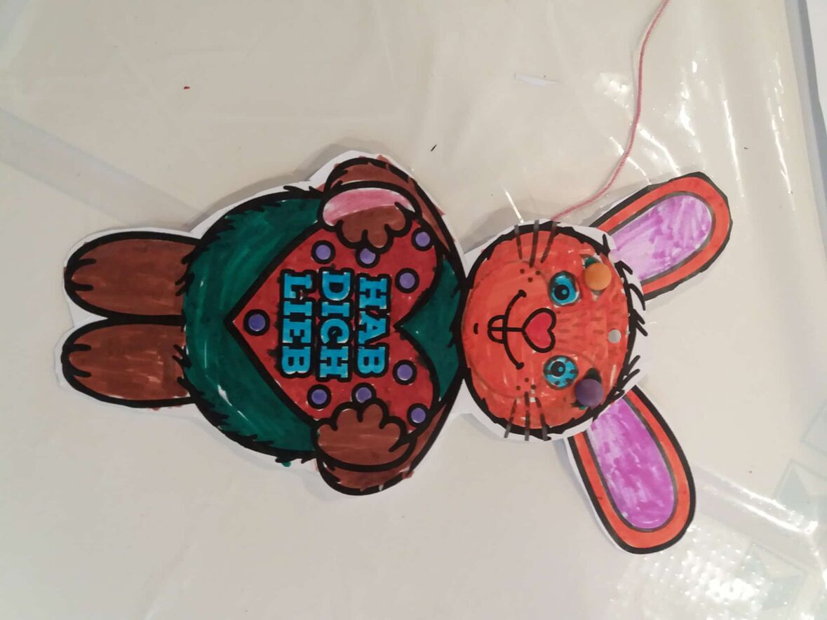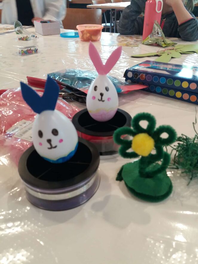 Eifrig haben Kinder und Erwachsene Ostereier bemalt und Ostertaschen gestaltet. Beim knüpfen der Schnüre für die hampelden Hasen und bunten Hühner war Fingerspitzengefühl gefordert. Am Schluss des Nachmittags haben viele lachende Kinder und Jugendliche ihre Ostergeschenke nach Hause gebracht.