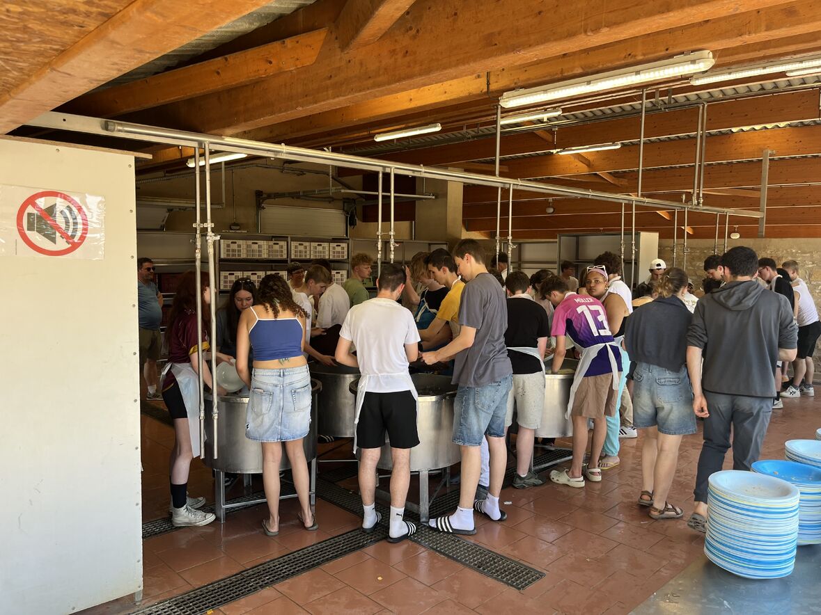 Zu erleben, wie sich so viele Jugendliche auf das einfache Leben in Taizé, auf die regelmässigen Gebetszeiten mit Stille und den einfachen Taizé-Gesängen, auf die Bibeleinführungen mit anschliessenden Gesprächsrunden und auf die Arbeit wie für alle zu kochen, zu putzen oder Essen auszuteilen, einlassen, hat die Schüler:innen und uns Leitende tief beeindruckt.
