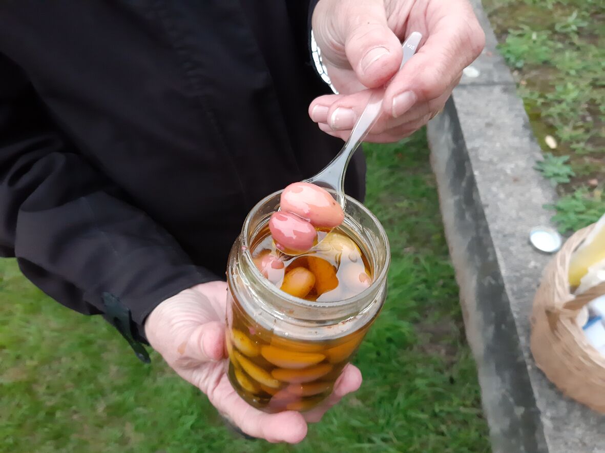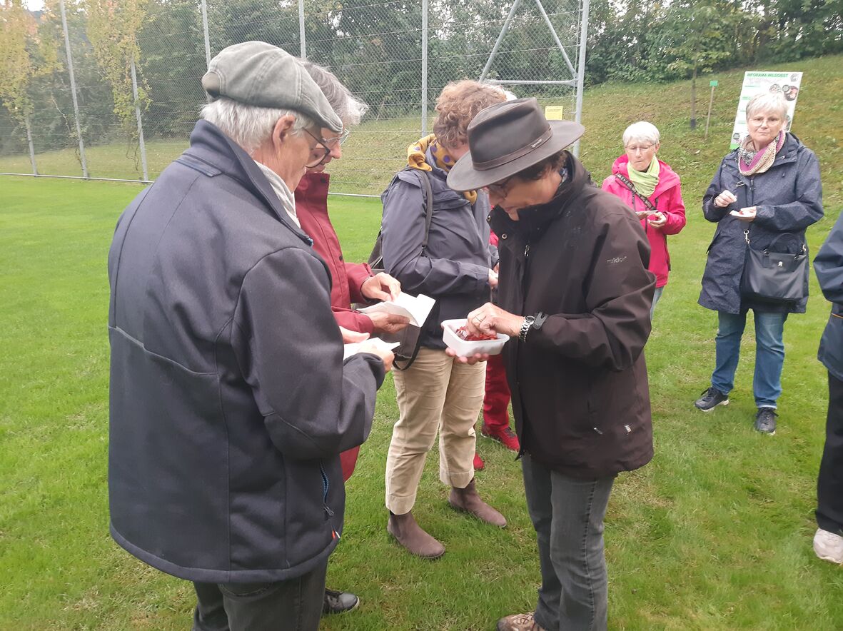 Die Ausschreibung für diese Führung hatte nicht zu viel versprochen. Auf dem kurzweiligen Rundgang hat Landschaftsökologin Waltraud Kugler mit ihren heiteren und auch kuriosen Geschichten über Herkunft, Brauchtum und Sagen des Wildobsts die Teilnehmenden in den Bann gezogen. Auch das Verkosten der Früchte, sei es direkt ab Pflanze, als Chutney verarbeitet, in gedörrter oder eingemachter Form war für alle Teilnehmenden eine Entdeckung!