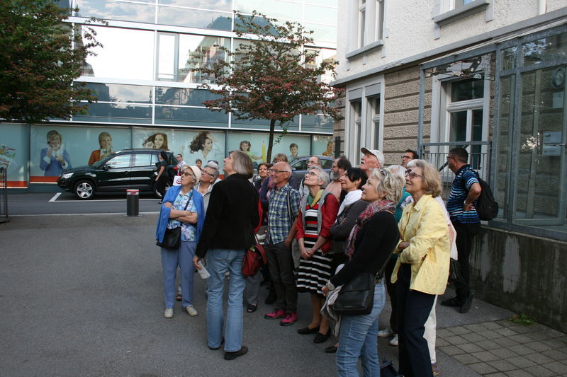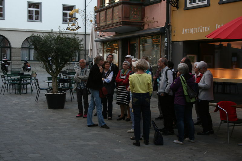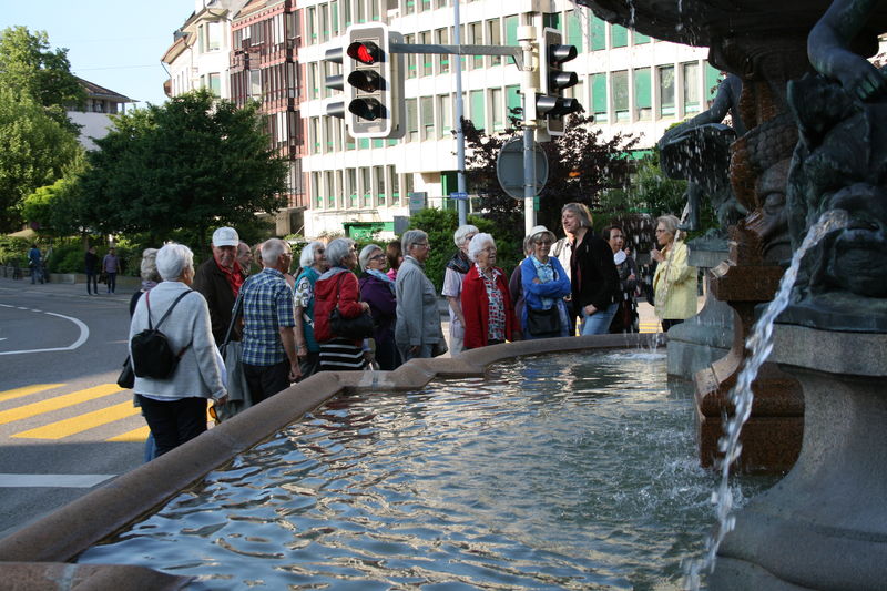 In der St. Galler Innenstadt hat die Freude an der antiken Mythologie ihre Spuren hinterlassen. Besonders der griechische Gott Hermes, der Schutzgott der Kaufleute, ziert manches alte Haus. Daneben gibt es in der Altstadt auch viele (oft unverhoffte) christliche Symbole. Und bald stellt man fest, dass beides oft gar nicht so einfach zu trennen ist. Da kann man sich oft nur wundern… Petra Mühlhäuser führte Interessierte aus den Gemeinden Grossacker, Halden, Neudorf, St. Fiden und Stephanshorn auf den Spuren christlicher, heidnischer und wunderlicher Symbolik durch die Innenstat von St. Gallen und teilte ihr breites und fundiertes Wissen gerne mit den Anwesenden. Es war ein warmer und gwundriger Abend!