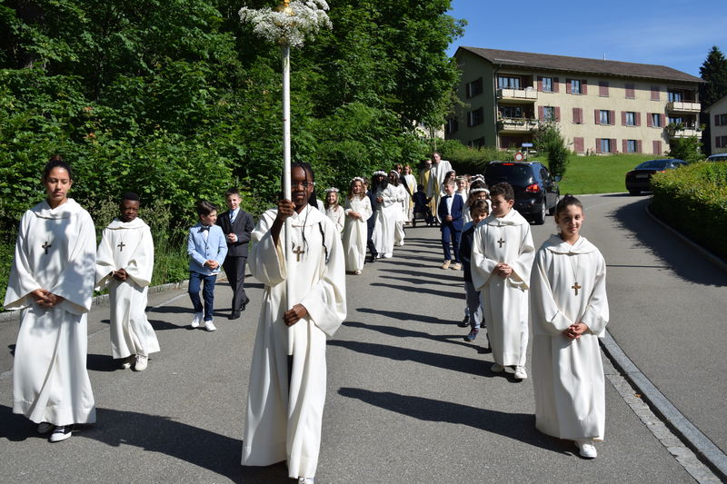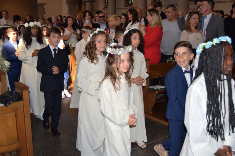 Am 3. Juni feierten 24 Kinder ihre Erstkommunion im Heiligkreuz. Die Eltern haben für ihr Kind ein Kreuz modelliert, das an diesem Tag gesegnet und den Kindern übergeben wurde. Die Kirche war mit 600 Personen bis fast auf den letzten Platz gefüllt.