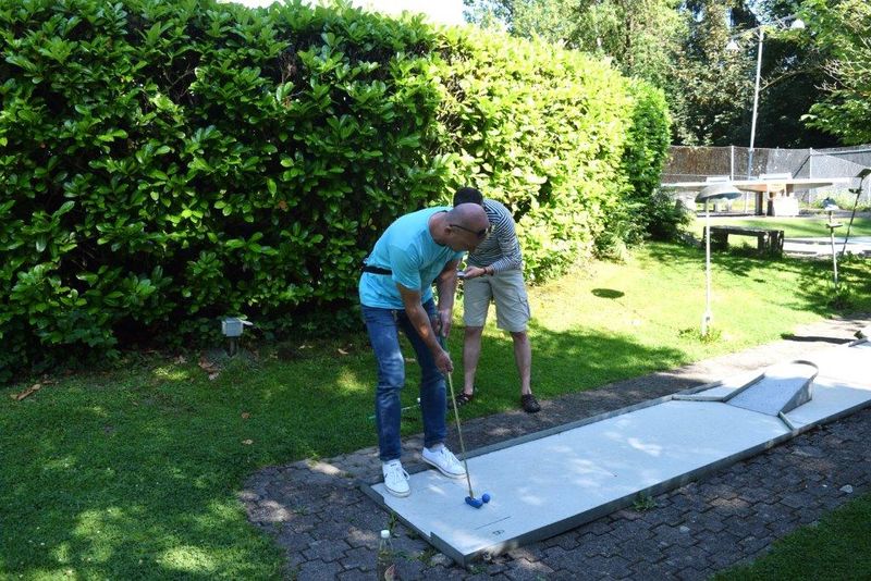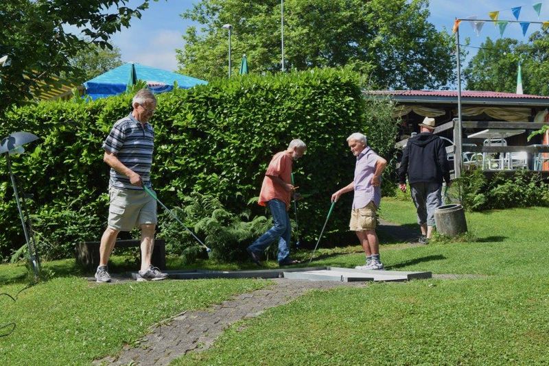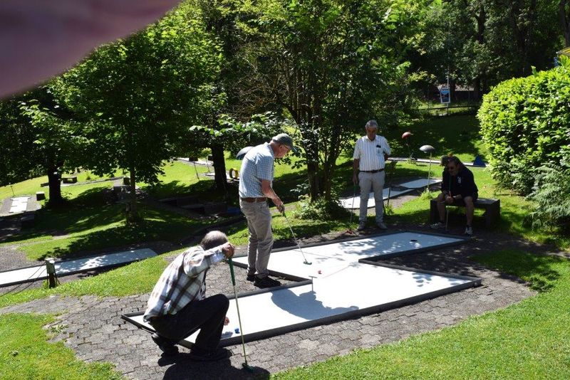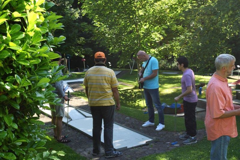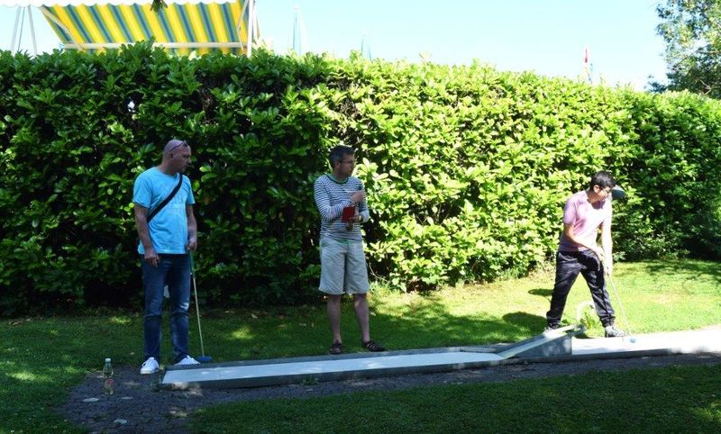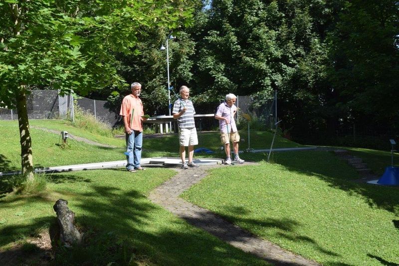 13 Männer haben sich am Morgen des 23. Juni 2018 zum Minigolf auf Dreilinden getroffen.