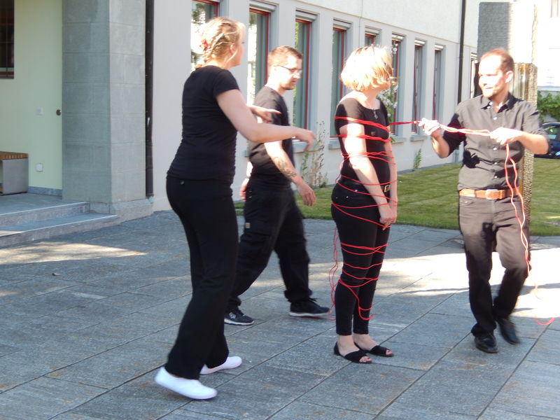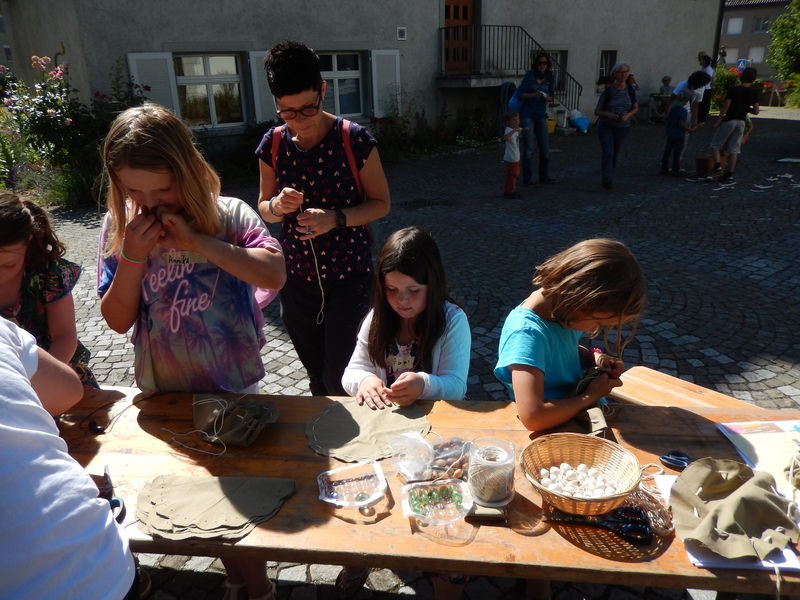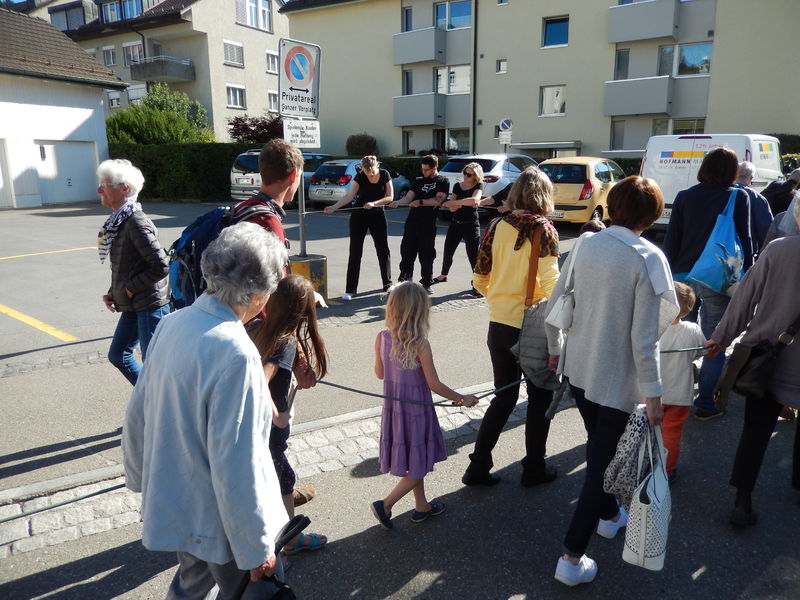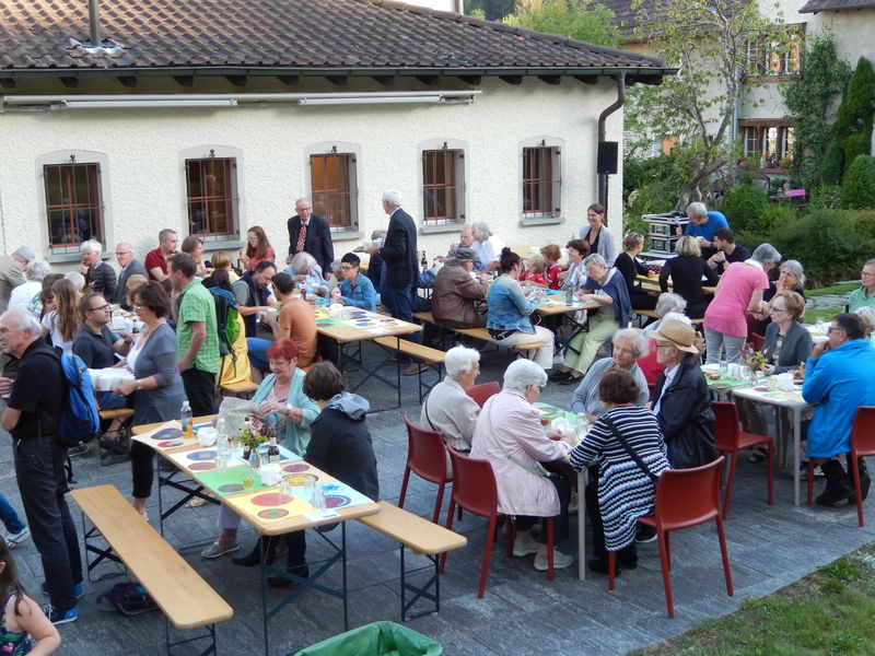 Wenn man ökumenisch der Reformation gedenkt, sieht das etwas anders aus als bei einem "normalen" Anlass. Am Nachmittag gab es ein spezielles Programm für Kinder und Familien mit Spielen und Werkarbeiten von "anno dazumal". Der Gottesdienst, der sich daran anschloss, begann in der katholischen Kirche unter Mitwirkung des Stegreiftheaters Tiltanic, wurde auf dem Weg zum Kirchgemeindehaus fortgeführt und mündete dort in einem Fest auf der Piazza St. Giorgio.