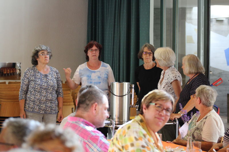 Das diesjährige Sommerfest wurde für einmal im Pfarreiheim St. Martin Bruggen durchgeführt. Insgesamt lockte die Veranstaltung 55 Gäste an, davon viele Frauen und Männer aus dem evang. Pflegeheim Bruggen. Mit Geschichten, Spiel und Gesang sowie mit einem feinen Nachtessen schloss der unterhaltsame und vielseitige Nachmittag. Ein herzliches Dankeschön für den feinen Dessert geht an die Küchenmannschaft des evang. Pflegeheims.
