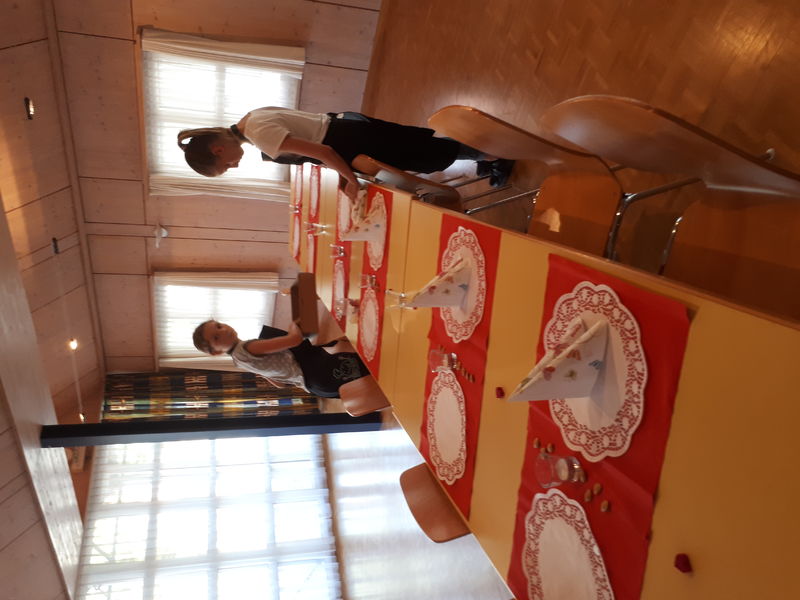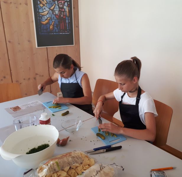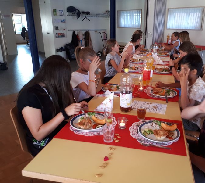 Als Abschluss des Schuljahres und Abschied von Beatrix-Baur Fuchs kochten am vergangenen Mittwoch vier Mädchen ein 3-Gang-Menü, zu welchem sie je eine Person einladen durften. Die Jugendlichen und Erwachsenen Besucher waren sichtlich erfreut über die Kochkünste und durften einen stimmungsvollen Abend (fast wie im Restaurant) geniessen.