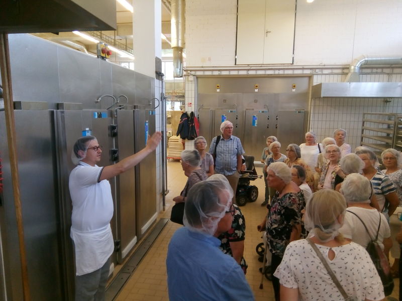Die Bäckerei Schwyter hat in St. Gallen eine lange Tradition. 1905 eröffnete Carl Schwyter in der Engelgasse sein erstes Geschäft. Seit 2014 hat das Unternehmen ihre Backstube bei uns im Südosten. Im Rahmen des ökumenischen Programms für SeniorInnen der Kirchen St. Fiden, Grossacker, Halden, Neudorf und Stephanshorn haben wir "unserem" Beck im Südosten einen Besuch abgestattet und durften bei grosser Hitze den BäckerInnen über die Schultern schauen.