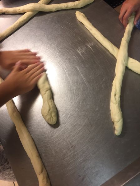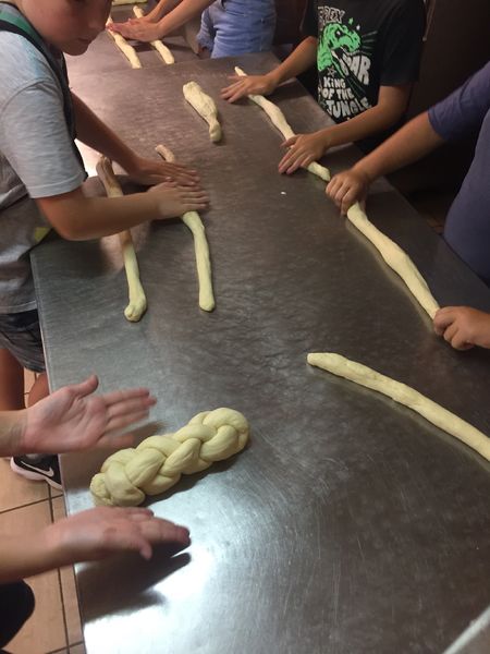 Die Minis zöpfelten rund 100 Zöpfe und haben diese nach den Sonntagsgottesdiensten verkauft.
