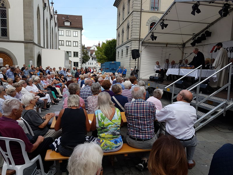 Beim St.Galler Stadtfest-Gottesdienst stimmten sich ich Festbesucher auf einen ausgelassenen Abend ein. So wie die Gerichte aus den unterschiedlichsten Ländern gut gewürzt sind und so wie die Scheinwerfer Licht ins Dunkel der Nacht bringen, so sollen auch wir Menschen Salz der Erde und Licht der Welt sein.