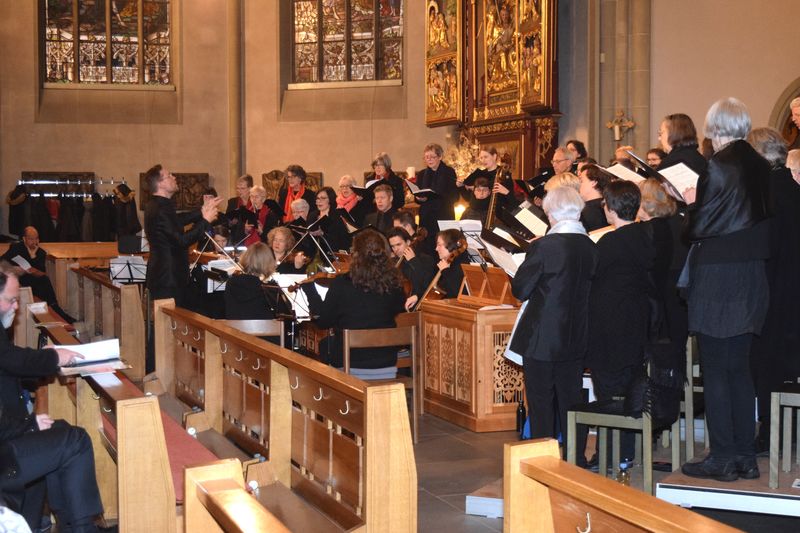 Am Dreikönigstag 2019 führte der Chor zu St.Otmar, zusammen mit dem Barockorchester Anima Mea, dem New Sagittarius Consort Zürich und vier, teils namhaften Gesangsolisten fünf Messen von W.A. Mozart auf, die diese in seiner Jugend komponierte. Trotz starkem Schneefall fanden aussergewöhnlich viele Besucher in das Konzert, was eine grosse Auszeichnung für alle Mitwirkenden bedeutete. Ein besonderer Genuss waren ebenfalls die klugen und auf den Punkt gebrachten Einführungen zur Musik durch Clemens Goldberg, der als Cellist, Journalist und Radiomoderator einen Namen, vor allem in Deutschland, geniesst. Das Projekt stand unter der musikalischen Leitung von Alexander Seidel und wurde hervorragend von einem OK unter Leitung von Stefan Etterlin organisiert.