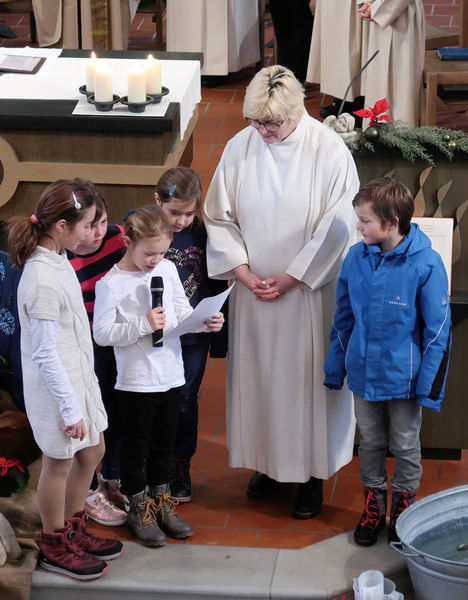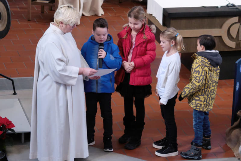 In diesem Gottesdienst erinnern sich die Erstkommunionkinder an ihre Taufe und bekennen dann selber ihren Glauben.