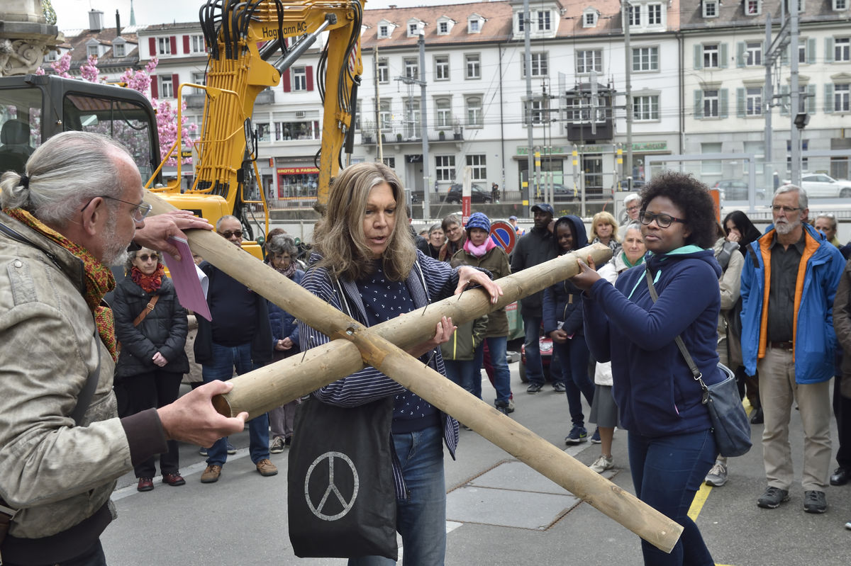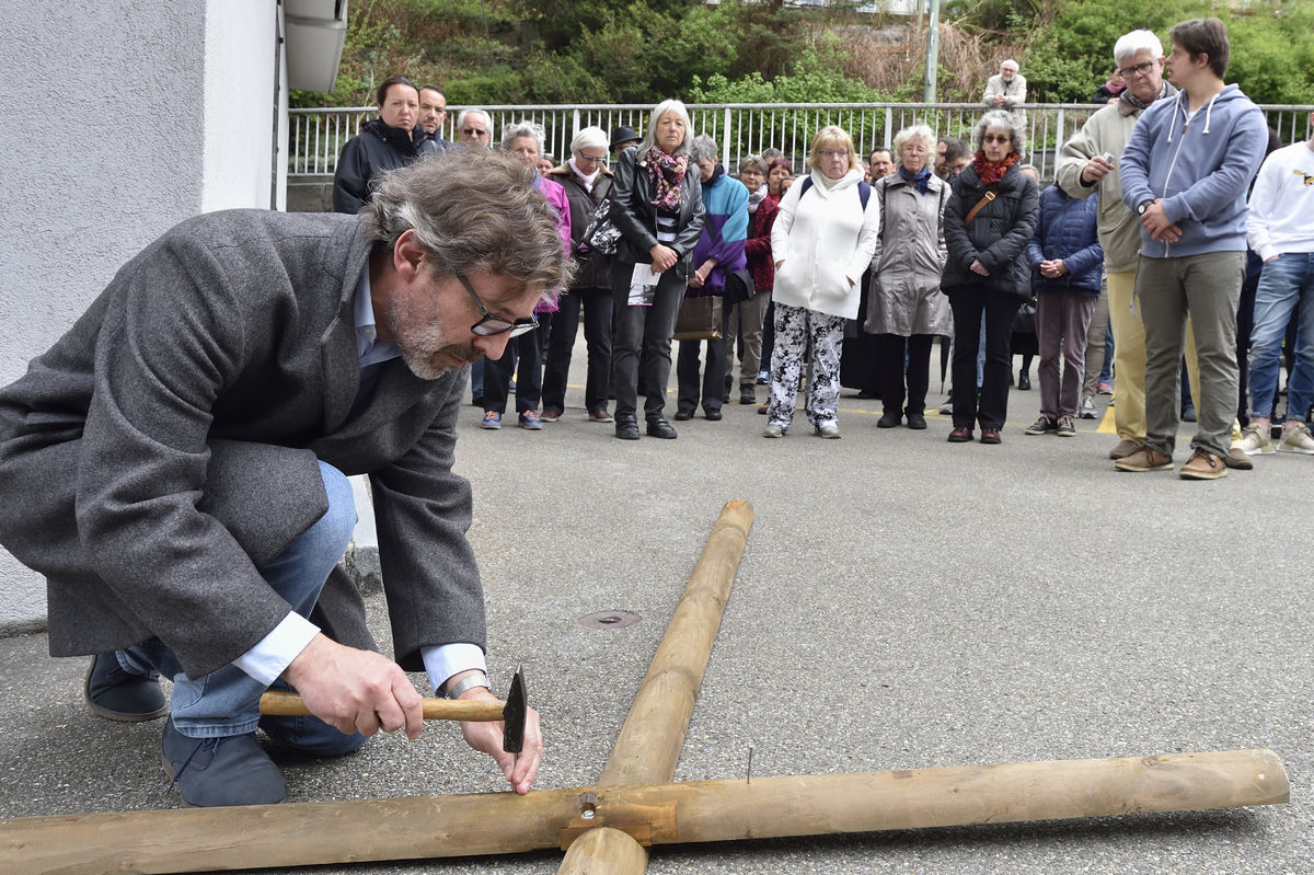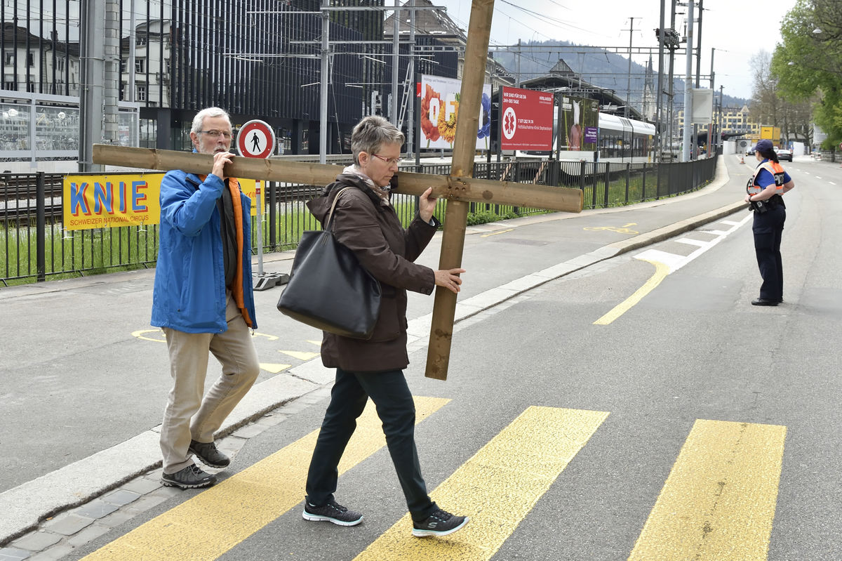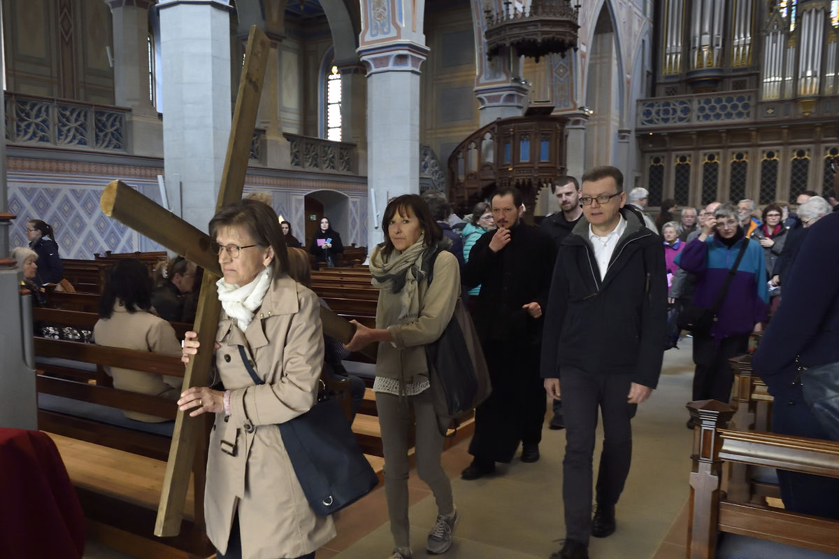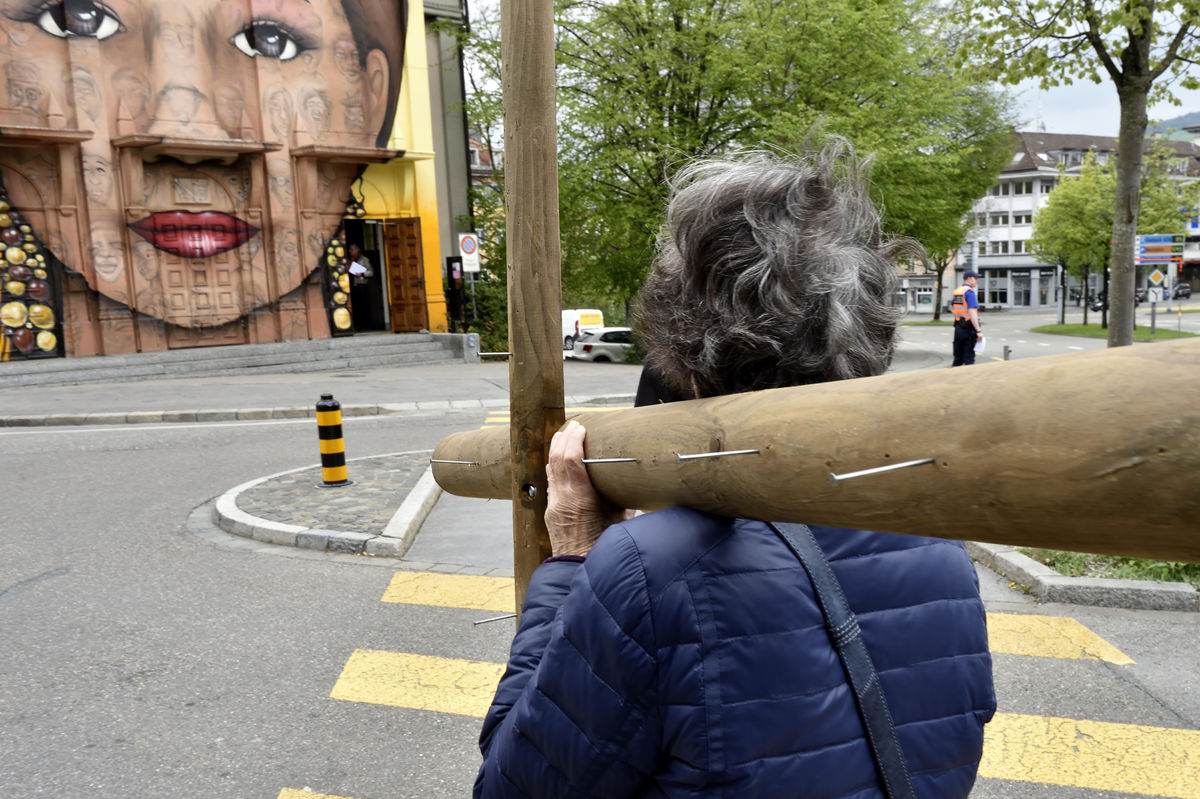 Der Kreuzweg der Gegenwart führt Menschen durch die Stadt St.Gallen, vorbei an aktuellen Orten des Leidens.