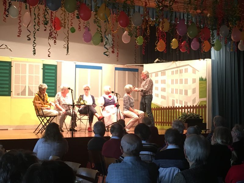 Das Seniorentheater spielte im fasnächtlich geschmückten Saal das Lustspiel „Feminine Charme“. Die Vermittlungskunst der Frauen versöhnte die verkrachten Nachbarn miteinander. Ein Nachmittag voller Heiterkeit und Spässe. Die Frauengemeinschaft sorgte ihrerseits mit der Dekoration, ihren Kostümen und dem feinen Zvieri und Dessert für eine Gastlichkeit voller Charme.