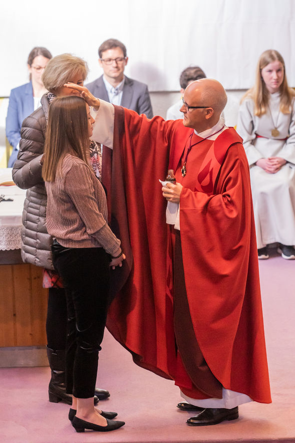 Generalvikar Guido Scherrer spendete elf jungen Erwachsenen die Firmung. Mit dem Firmgottesdienst erreichten sie den Höhepunkt des Firmwegs. Die Firmlinge gestalteten den Firmgottesdienst aktiv durch Wortbeiträge und Musik mit. Die Katholische Kirche Riethüsli war bis auf den letzten Platz besetzt.