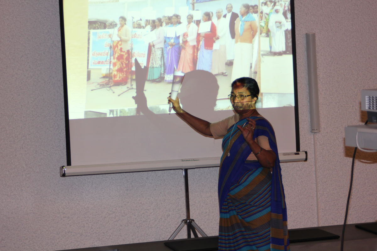 Wenn man am Morgen als ersten Menschen eine Witwe sieht, bringt das angeblich Unglück - solche Vorstellungen will Schwester Stella ändern, denn sie tragen wesentlich bei zur gesellschaftlichen Isolation und Diskriminierung von Witwen in Indien. Die Priorin einer franziskanischen Gemeinschaft im südindischen Bundesstaat Tamil Nadu hat im Rahmen des Time-out-Programms ein eindrückliches Zeugnis von ihrer Arbeit abgegeben. Für sie ist es ebenso wichtig, die Grundrechte der Witwen einzufordern wie auch innerlich die eigenen Einstellungen zu verändern. Sie setzt sich für Bildung für alle ein - ob es nun um Kinder von Witwen geht oder von abgelegen lebenden Völkern. Daneben engagiert sie sich gegen Gewalt an Frauen, für das Sammeln von Plastik zum Schutz der Umwelt sowie für den interreligiösen Dialog unter den zwölf Religionsgemeinschaften ihrer Stadt. Da passte es gut, dass der Anlass in der interreligiös gestalteten Kapelle des St. Galler Kantonsspitals stattfand.