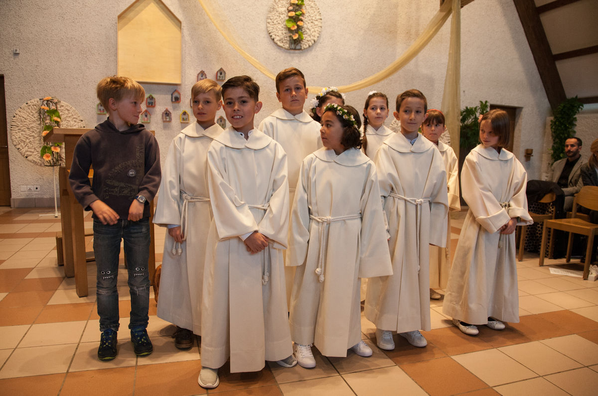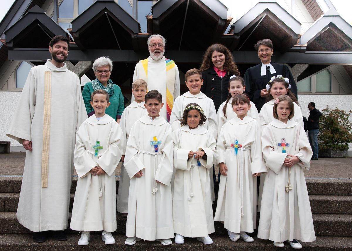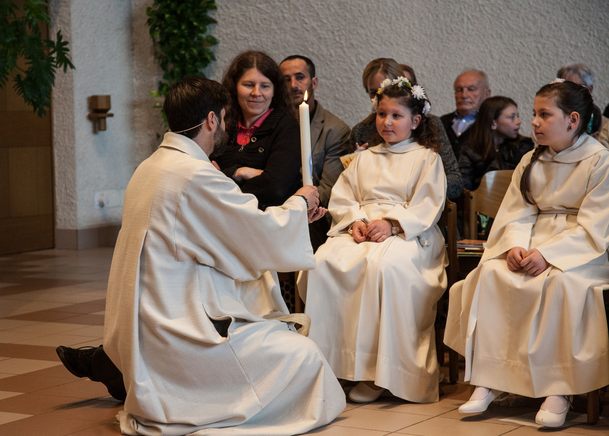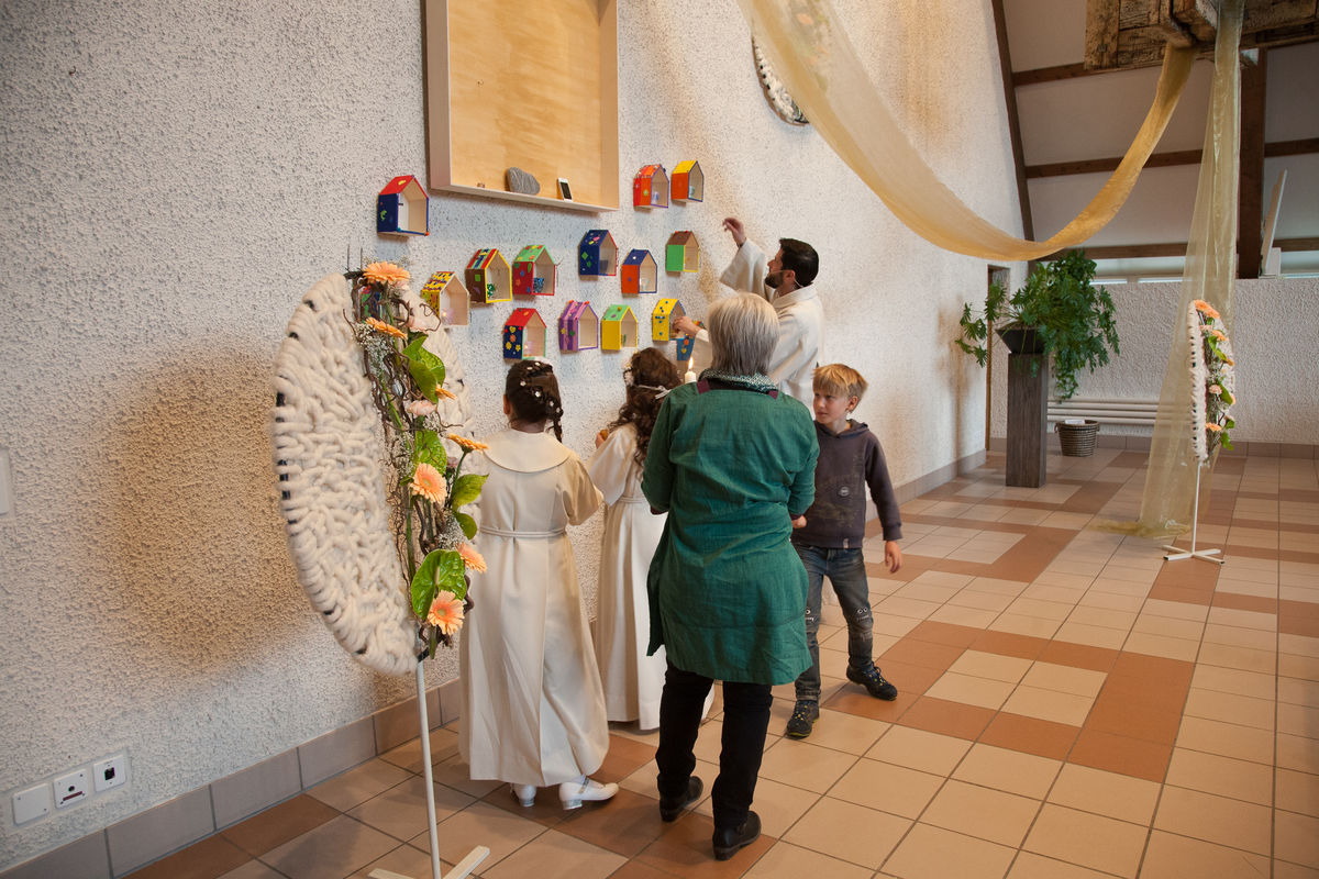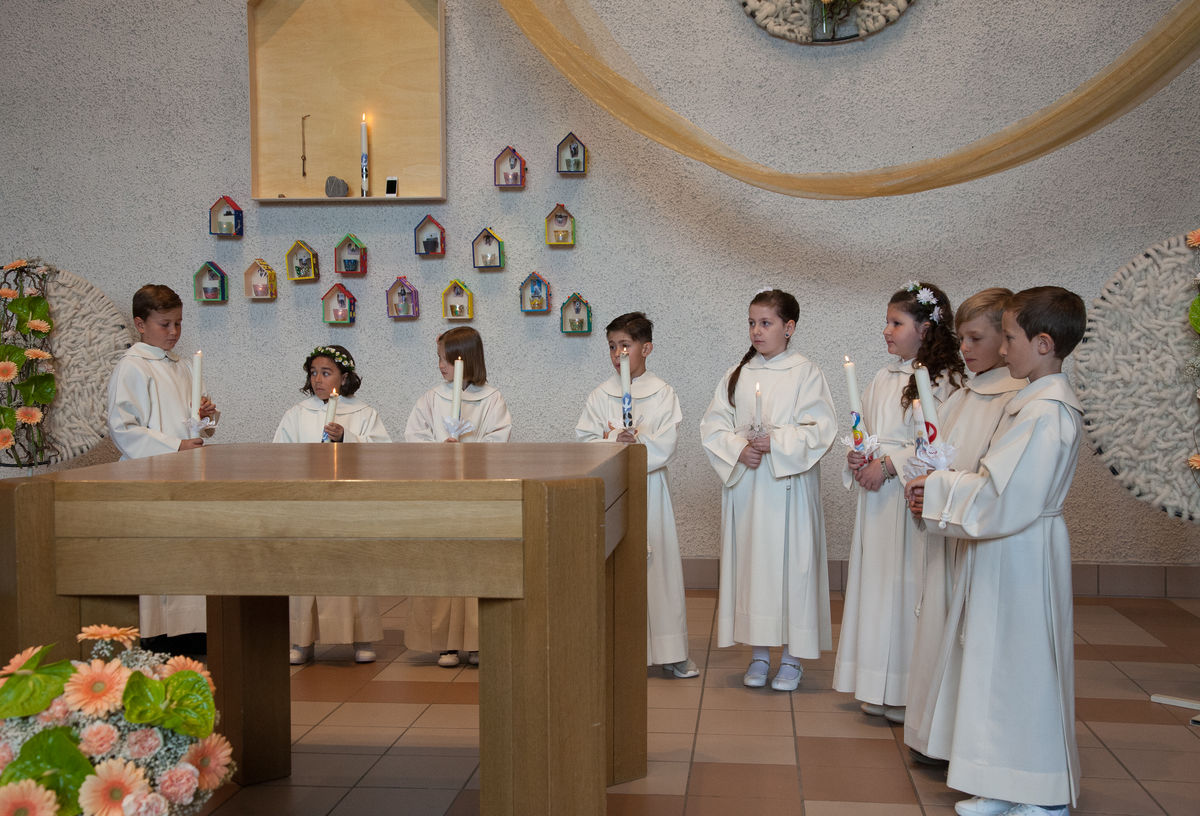 An einem nicht ganz schneeweissen Sonntag konnten wir mit neun Kindern in der Haldenkirche deren Erstkommunion feiern. Unter dem Motto "Wo Gott wohnt..." haben wir uns auf die Suche gemacht, wo Gott für uns wohnt, wo Gott spürbar ist. Mit einer berührenden Tiefe hat Greorg Schmucki unsere Erstkommunionkinder in der Feier der Eucharistie auf die Spur gebracht, dass Gott ihnen in Brot und Wein begegnet und in ihnen selbst Heimat hat.