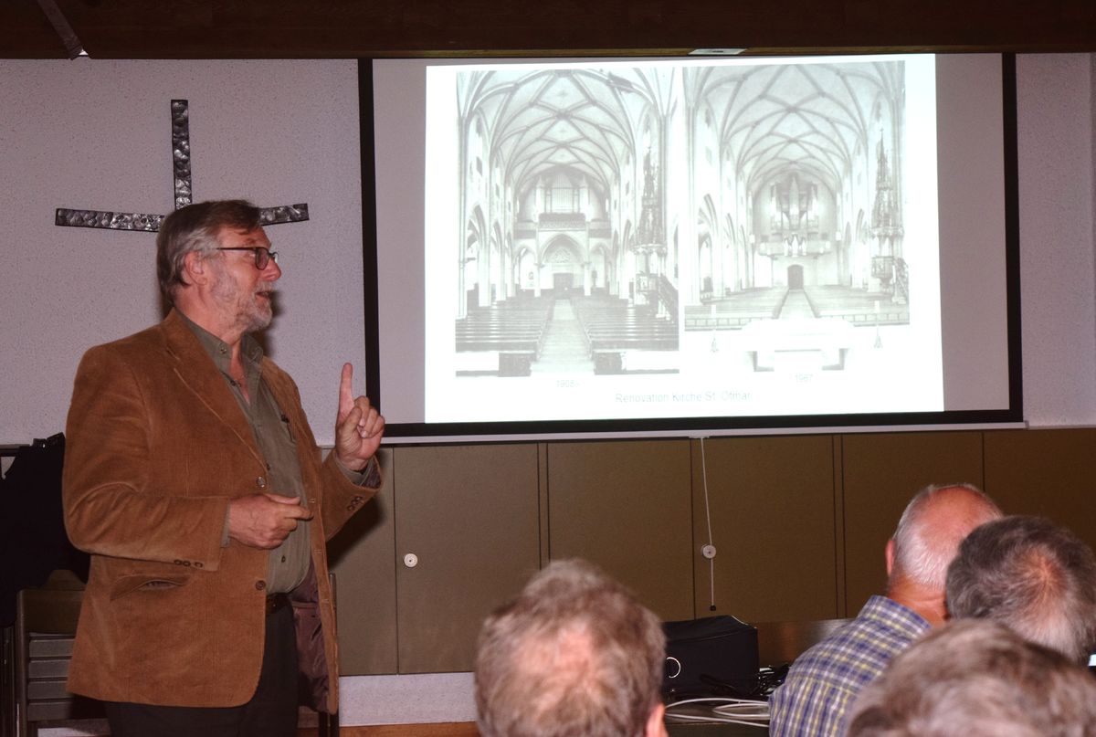 Anlässlich des 111 Jahr-Jubiläums der Kirche St.Otmar hielt Pius Gemperli, Architekt, einen interessanten Vortrag zur Baugeschichte der Kirche St.Otmar, deren Architekten August Hardegger und dem damaligen Baustil im allgemeinen.