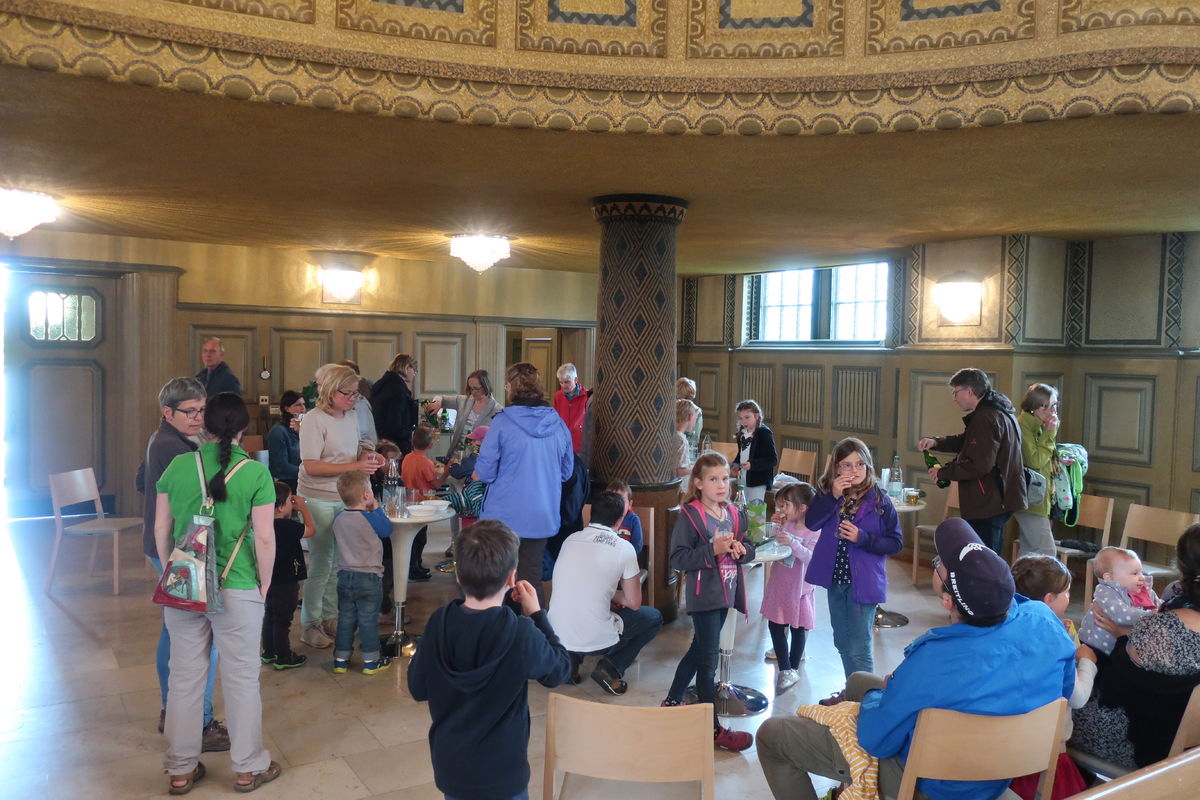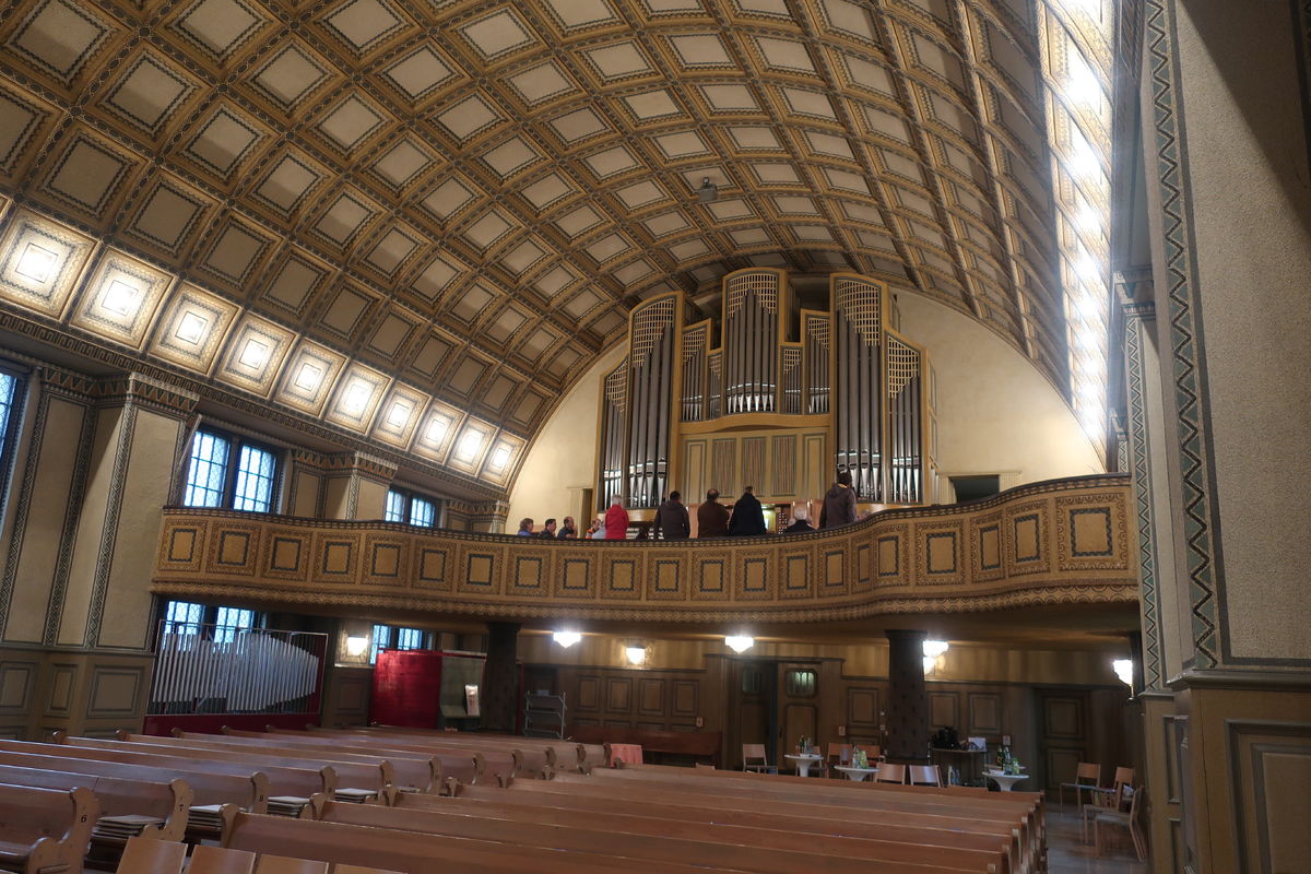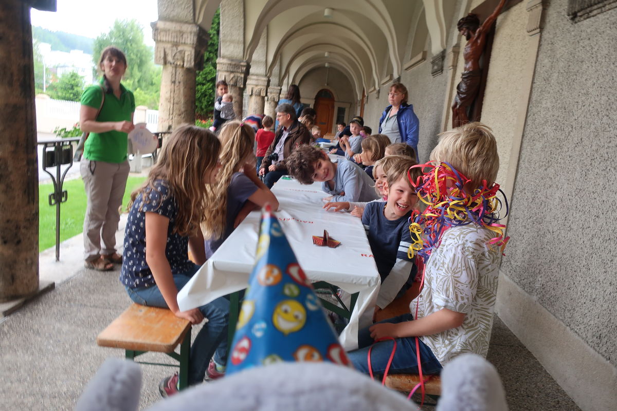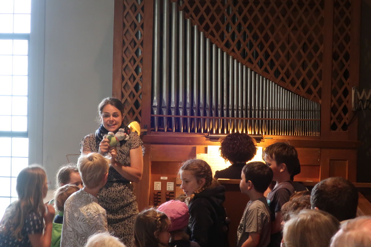 Am Pfingstmontag-Nachmittag haben sich rund 70 Erwachsene und Kinder auf den Weg gemacht, um drei Orgeln im St. Galler Osten zu erkunden. Maja Bösch hat uns die kleine Orgel der Wallfahrtskirche Heiligkreuz, die impossante Orgel der evangelischen Kirche Heiligkreuz und die grösste Orgel des Bodensee-Raums in der Kirche St. Maria Neudorf vorgestellt. Für Gross und Klein war etwas geboten. In der Wallfahrtskirche hat die Orgel ein kleines Mäuschen zum Sprechen gebracht. Die Orgel der evangelischen Kirche Heiligkreuz lies den Papagei abtanzen und in der Kirche St. Maria Neudorf hat die Grösse der Orgel uns den Atem geraubt und einen elefantösen Eindruck hinterlassen. Regina Sala hat gekonnt und beherzt die drei Tier-Begleiter zum Leben erweckt und dank der Kreativität von Christina Hegelbach konnten die Kinder durch's Basteln auch spielerisch in die Wunderwelt der Orgeln eintauchen. Abschliessend haben wir, dem Regen trotzend, den spannenden Tag bei Bratwurt und Vegiburger ausklingen lassen.