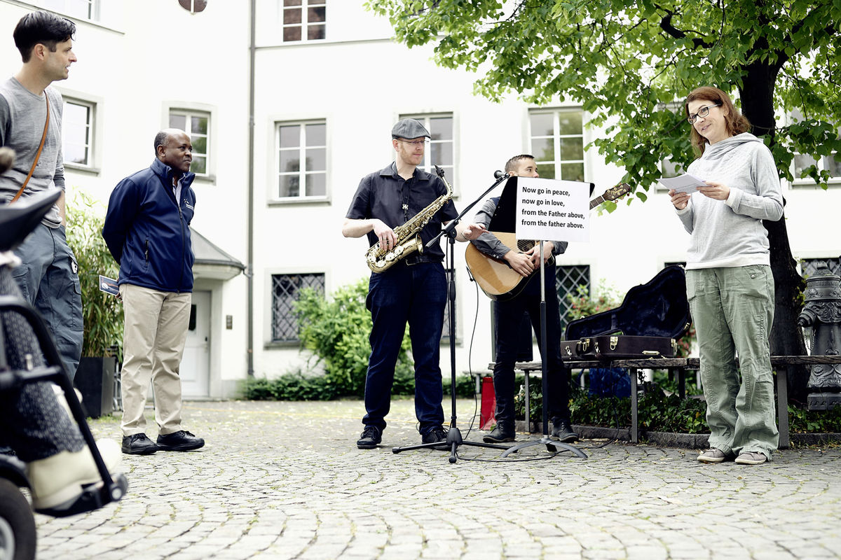 Matthias Wenk wurde von seinen Teamkolleginnen und -kollegen des Cityteams bei der Aussendungsfeier im Bibliothekshof gesegnet und ausgesandt. Dann nahme er den Weg in den Wald am Rütibach (St.Georgen) unter die Füsse. In seiner ersten Nacht in der Hängematte fielen 9cm Regen. Er hatte also einen sehr anspruchvollen Einstieg. In seinen täglichen Blogbeiträgen berichtet er über das Leben im Wald, über Begegnungen mit suchenden Menschen und von seiner eigenen Suche, in der Natur Gott zu begegnen. Die Blogbeiträge finden sich auf der Webseite des Projekts.