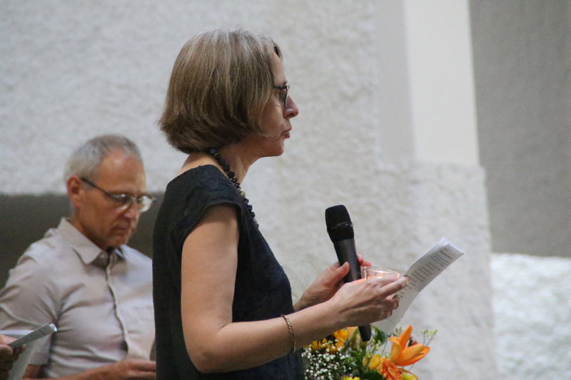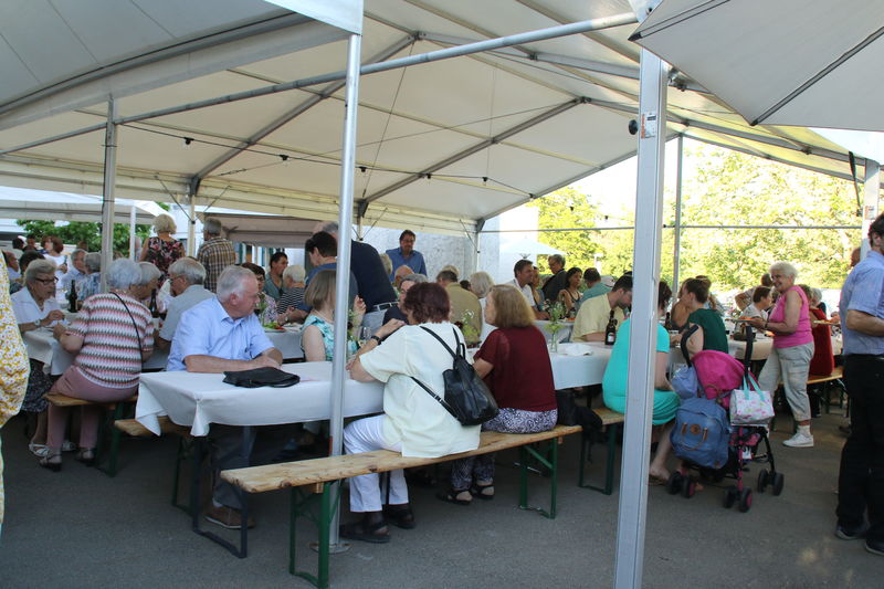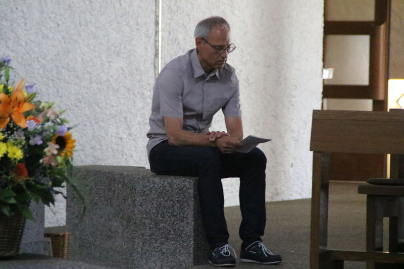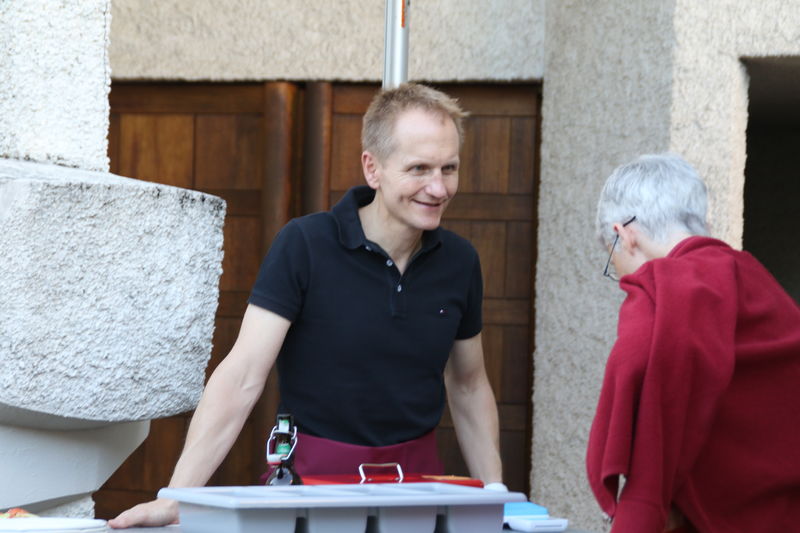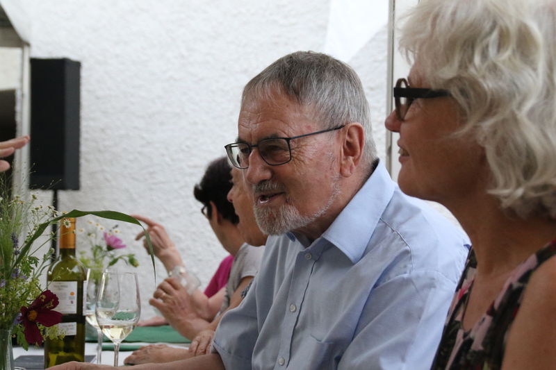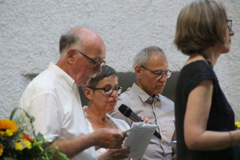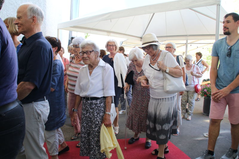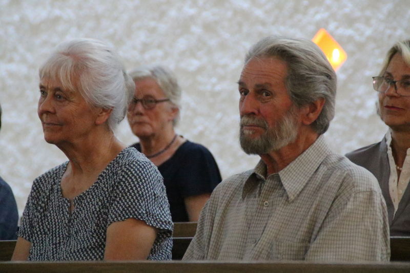 Der Künstler Fredi Thalmann, der vor 50 Jahren die sakralen Elemente aus Stein geschaffen hat und seine Frau Hedi waren auch dabei.