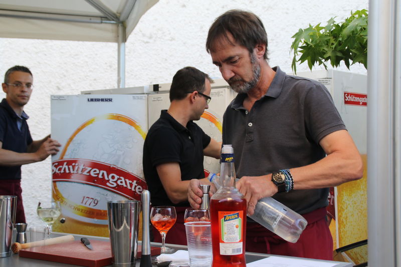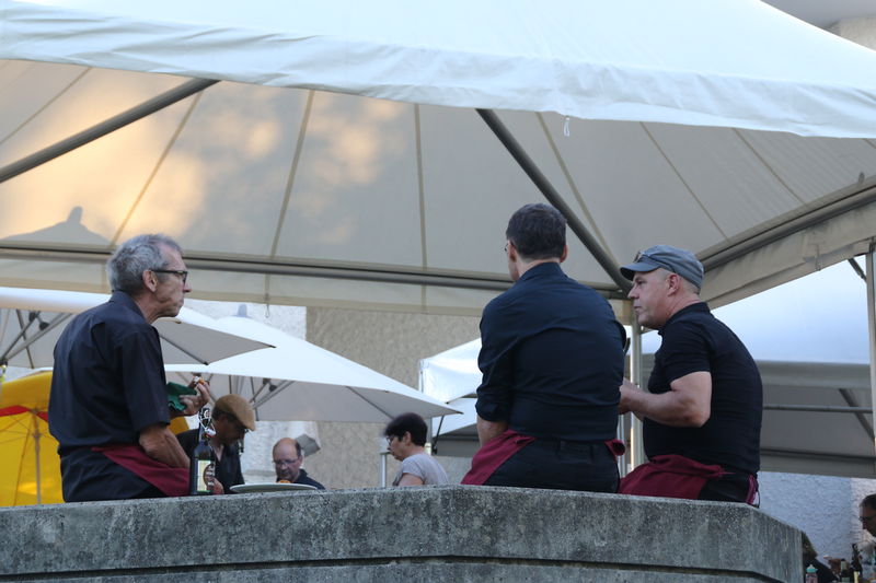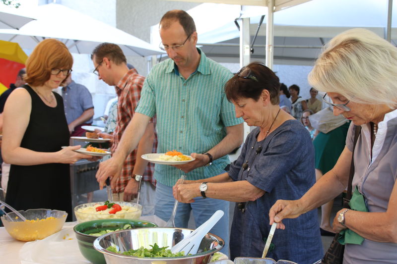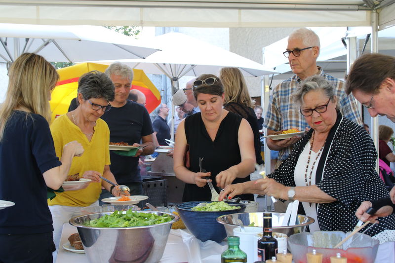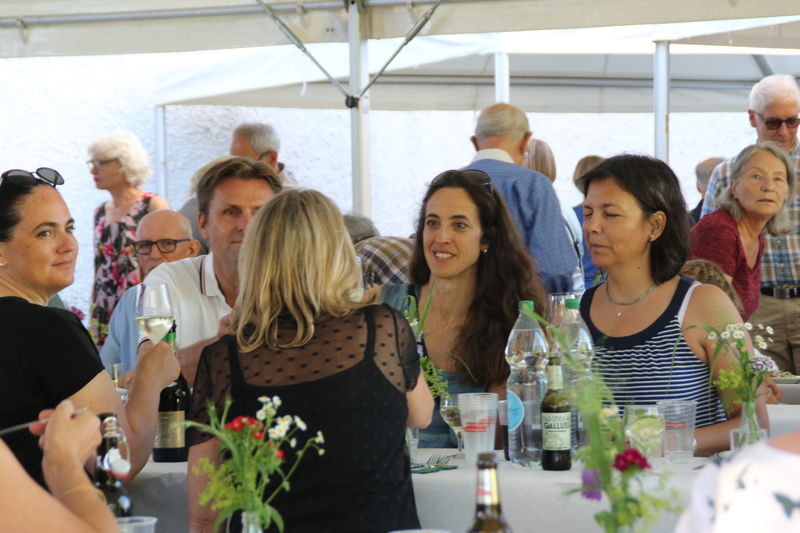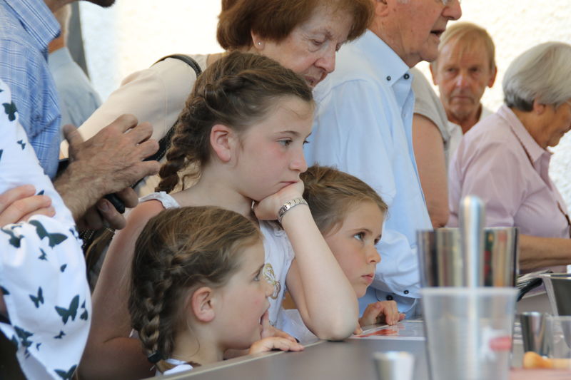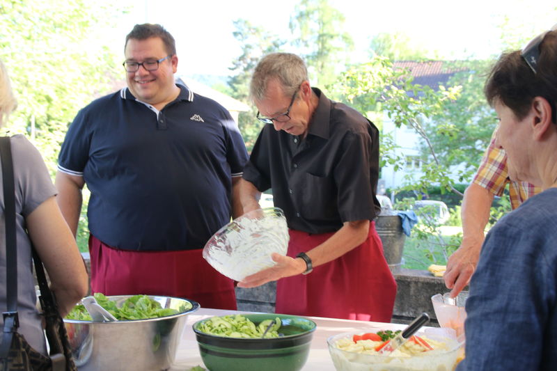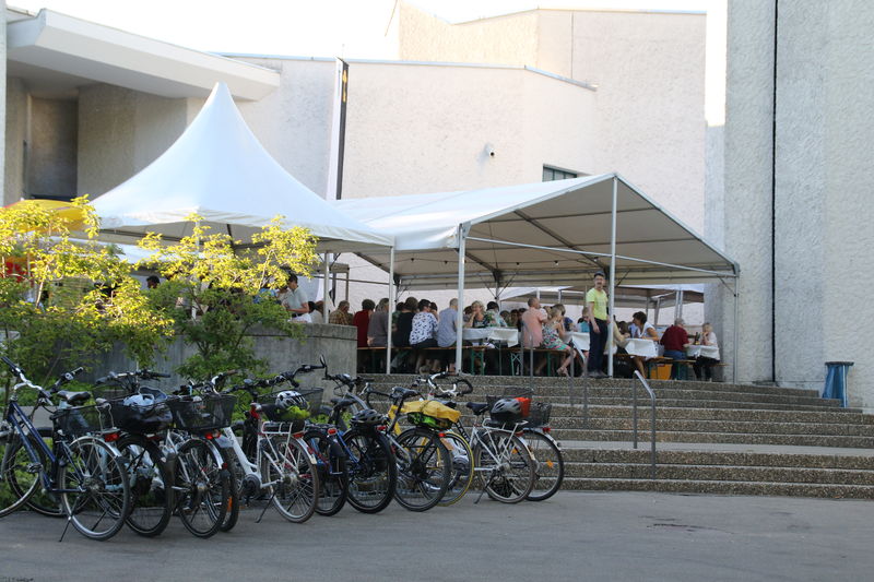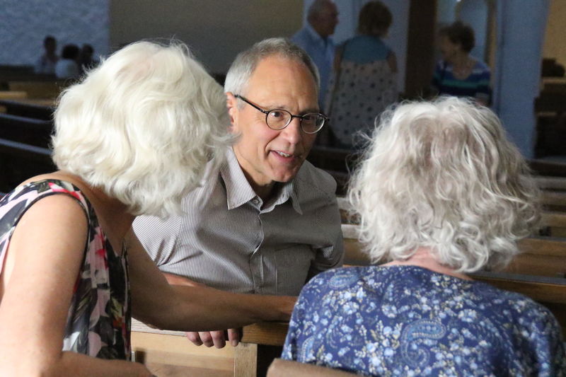 Der Künstler Fredi Thalmann, der vor 50 Jahren die sakralen Elemente aus Stein geschaffen hat und seine Frau Hedi waren auch dabei.