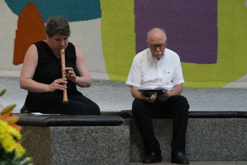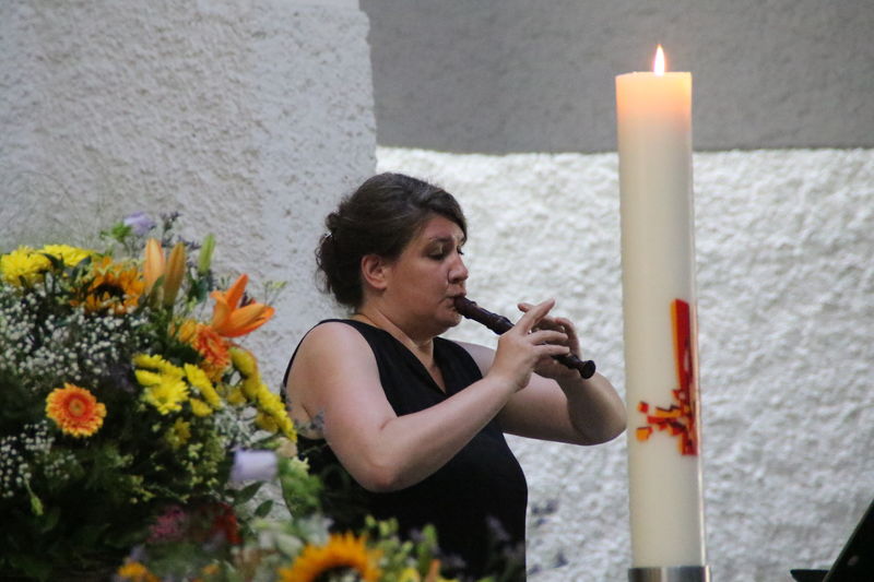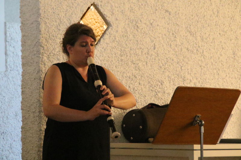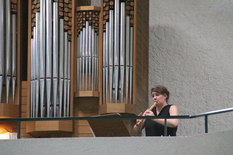 Annina Stahlberges virtuoses Flötenspiel erklang von allen Seiten, sie spielte im Dialog mit Maja Bösch an der Orgel.