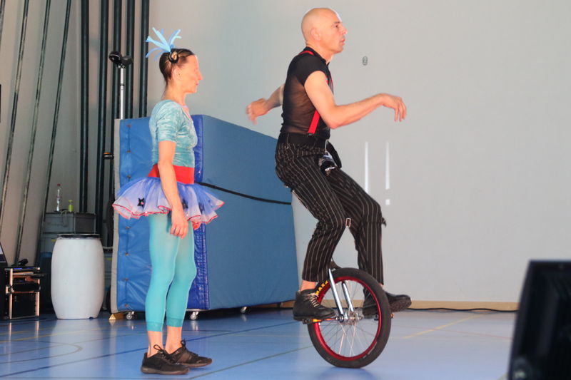 14 Uhr Eröffnung in der Turnhalle mit einer Show vom Duo Scacciapensieri