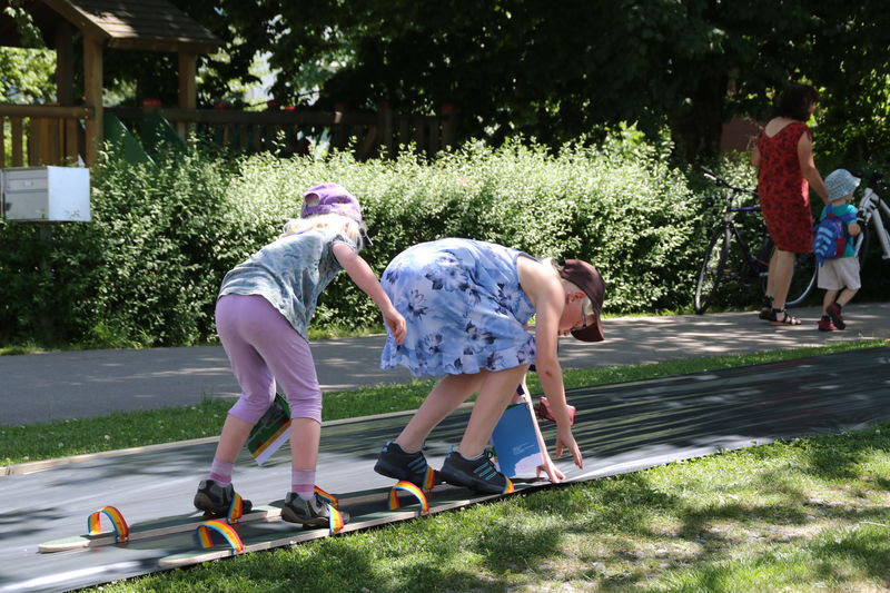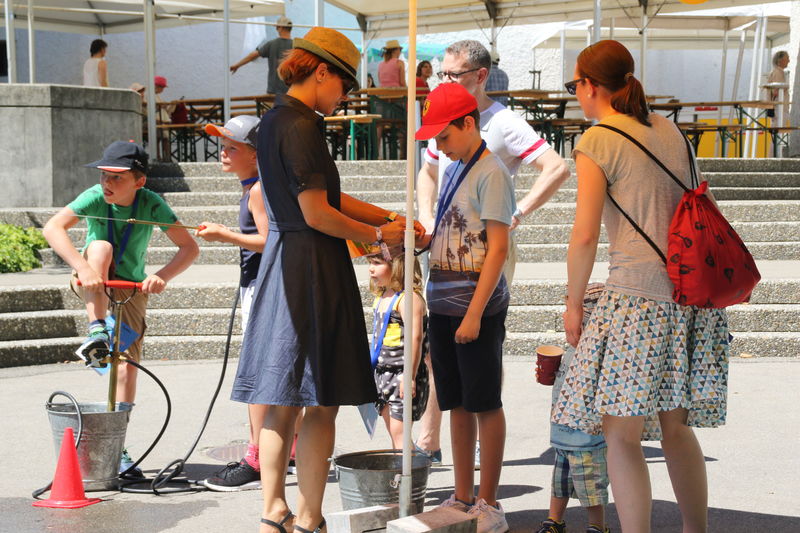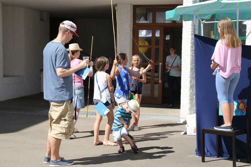 verschiedene Posten und Attraktionen animieren zum Mitmachen.