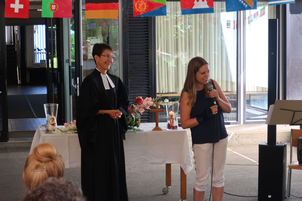 Der letzte Sonntag der Ferien ist immer ein besonderer Tag: die Ferien gehen zu Ende und ein neues Schuljahr beginnt. Beim traditionellen Gottesdienst zum Schulanfang auf dem Pausenplatz des Haldenschulhauses haben wir deshalb um Segen für das neue Schuljahr gebetet. Das Neue, das die Kinder und Lehrer*innen erwartet, ist wie ein Weg, den sie gehen müssen - mit Höhen und Tiefen, durch dunkle und helle Wegstrecken, steinig und angenehm, steil und eben. Monika Enz hat dies den Kindern in ihrer feinen und berührenden Art den mitfeiernden Kindern und Eltern veranschaulicht. Und wir durften in der Gemeinschaft spüren: Wir sind auf unserem Weg nie alleine, denn Gott ist mit uns! Die Musik von Beatrice Rogger (Querflöte) und Alexander Sennhauser haben dem Gottesdienst eine ferienhafte Leichtigkeit verliehen.