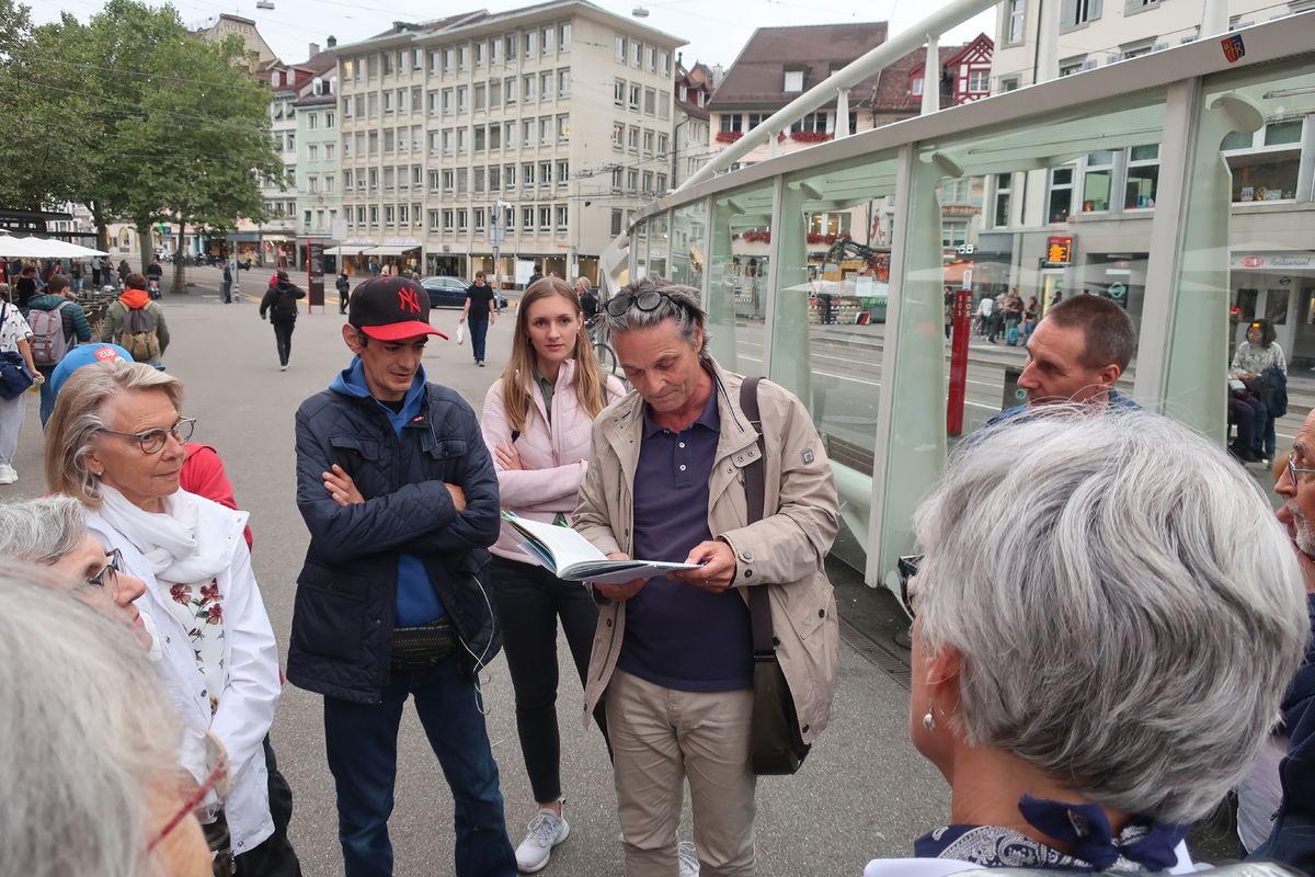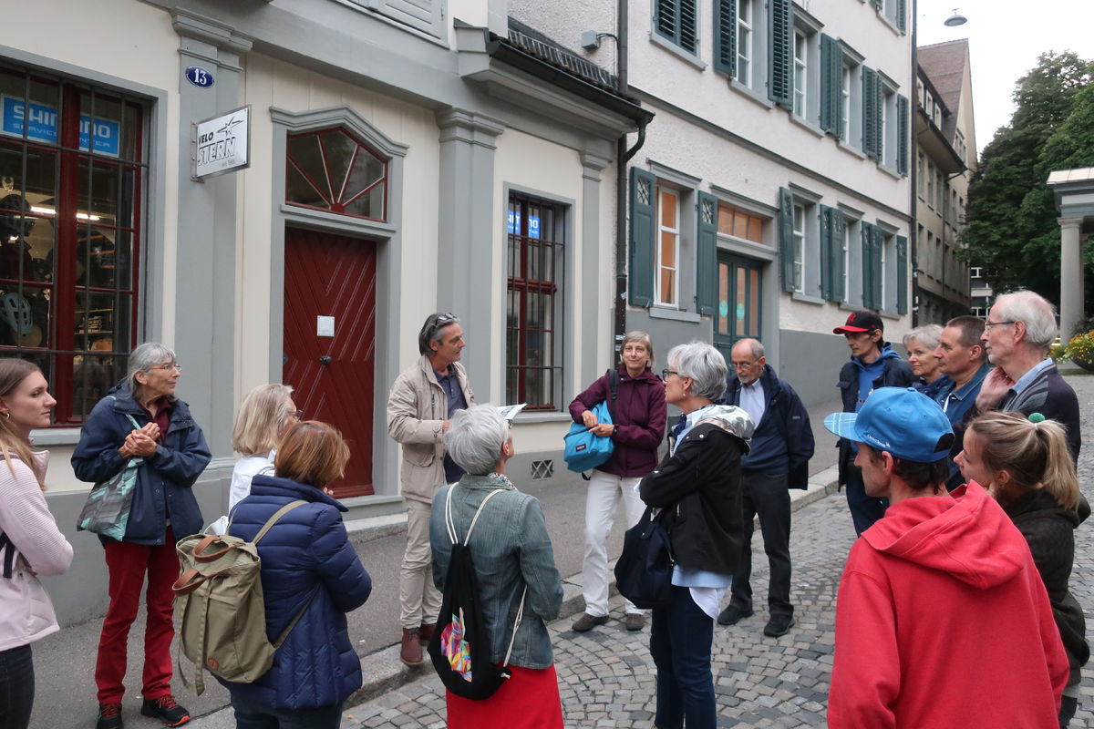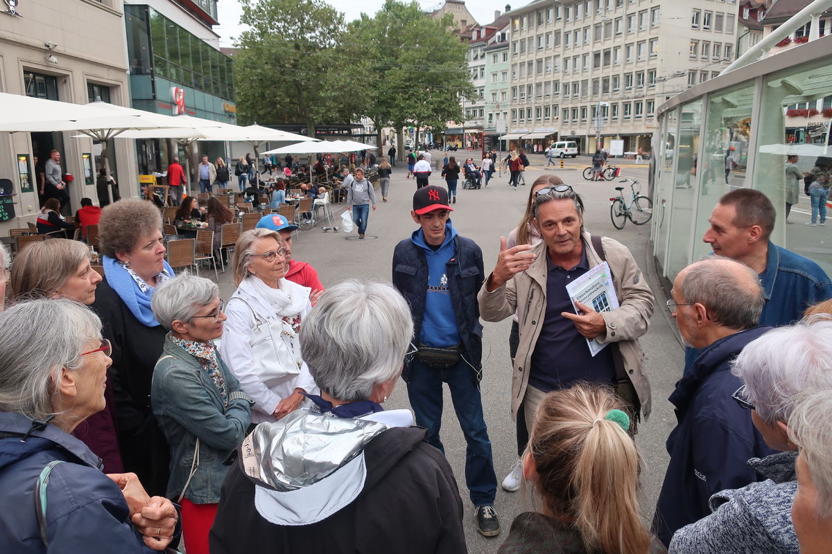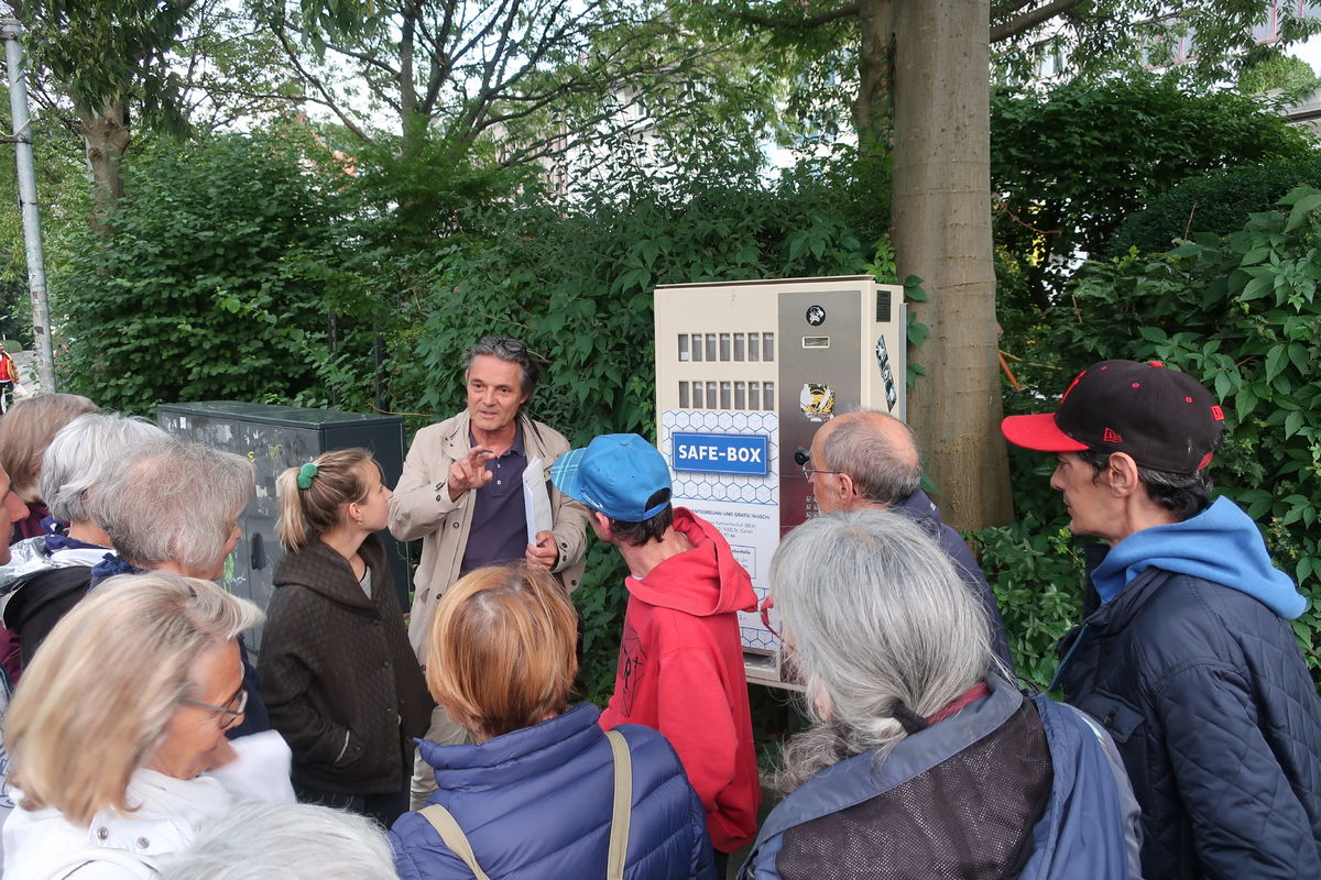 aber nicht, dass es sie nicht mehr gibt. Auf einem Spaziergang mit Jürg Niggli, dem Geschäftsleiter der Stiftung Suchthilfe, liessen wir uns im Rahmen des TimeOutProgramms der Kirchen im Südosten informieren über Orte, an denen Sucht sichtbar ist oder war und zu Institutionen, die ein menschenwürdiges Leben für Suchtkranke anstreben. Lesungen und Informationen wechselten sich ab. Jürg Niggli schöpfte dabei aus seiner reichen Erfahrung und seinem Feuer für die Sache. Unterstützt wurde er dabei von zwei Klienten und einer Mitarbeiterin im "Blauen Engel". Der Spaziergang endete mit einem Apéro im Katharinenhof.