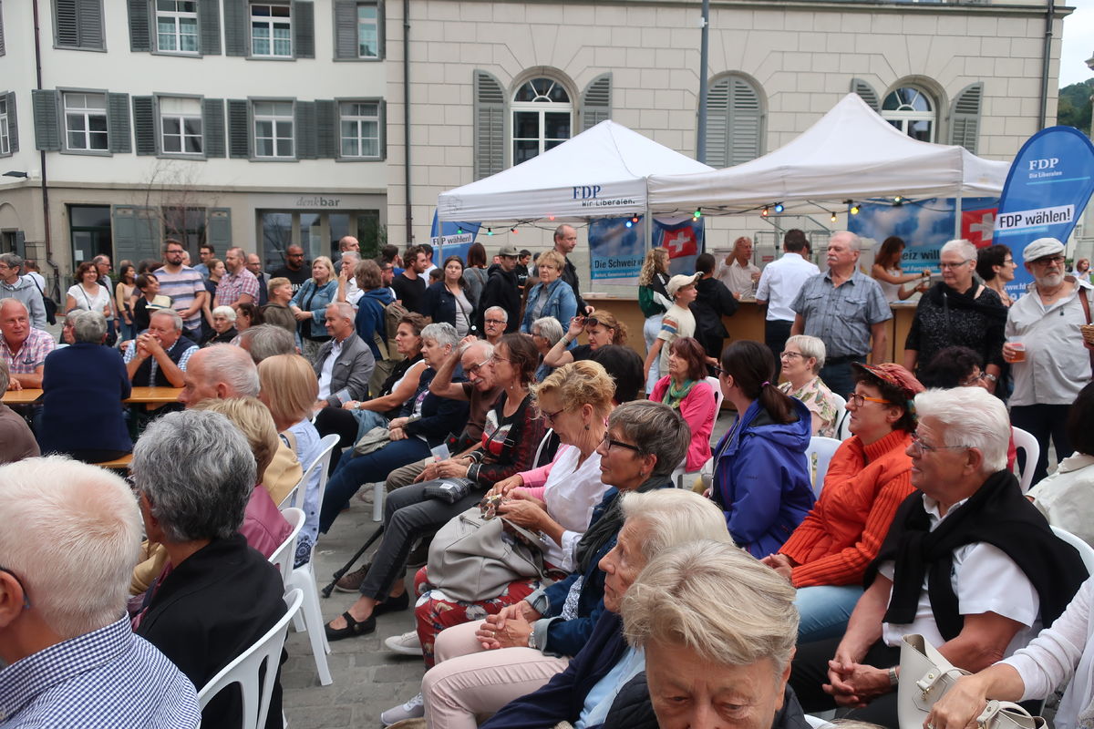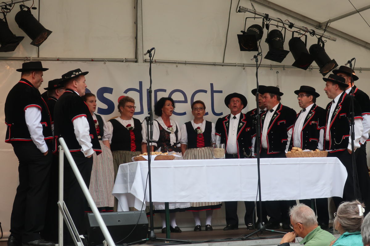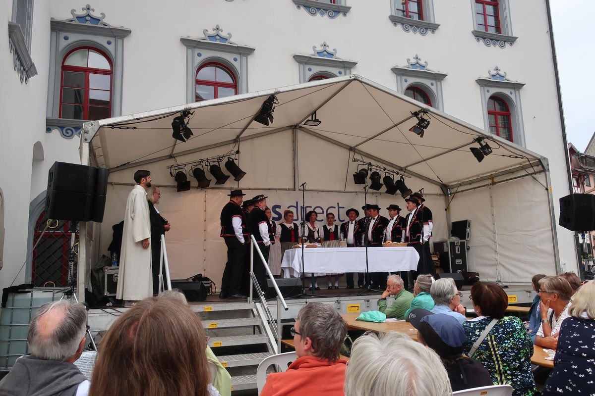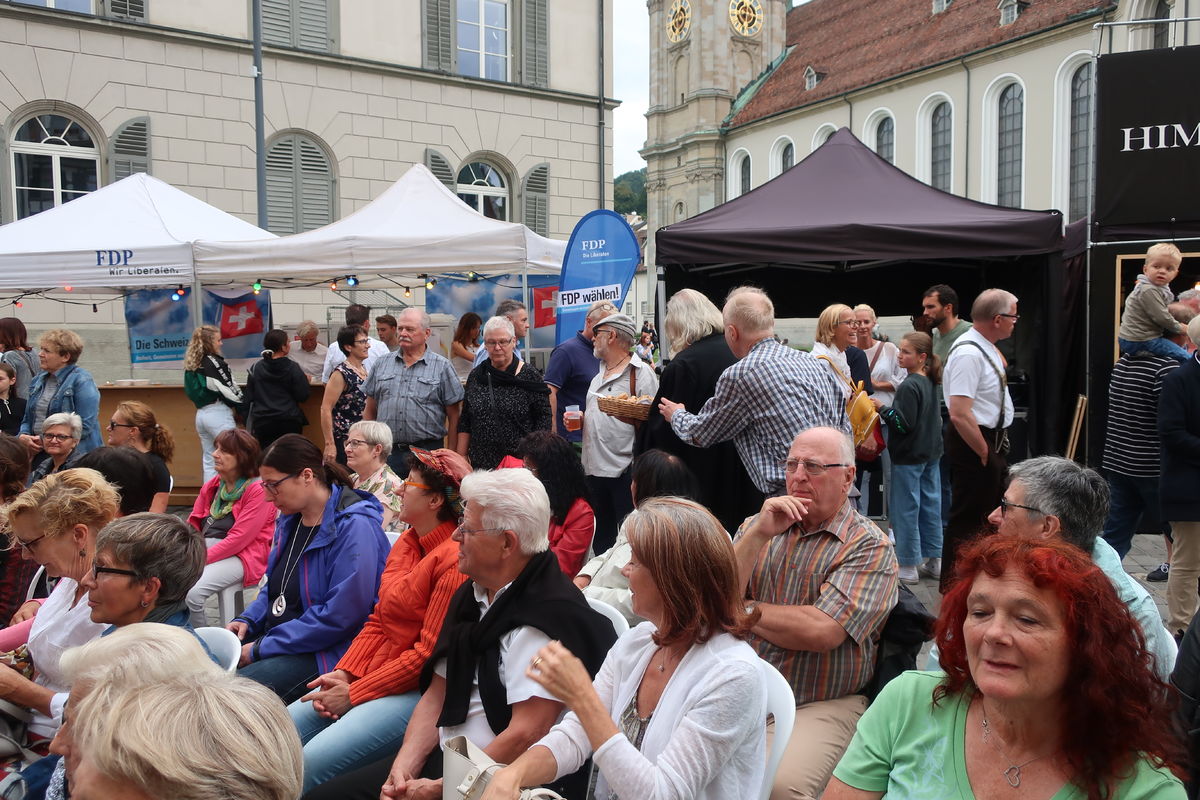 Auch beim Gottesdienst gab es grosses Interesse - natürlich auch wegen der Musik! Während die Appenzeller Naturjodelformation "dross ond dree" den Gottesdienst "einläutete", sang der Jodelclub "Klein Rigi" im Gottesdienst. Pfr. Hansreudi Felix von der Laurenzenkirche und Matthias Wenk von der Cityseelsorge der kath. Kirche im Lebensraums St. Gallen gestalteten den Gottesdienst inhaltlich: Lasst uns guter Boden sein, auf dem Gutes wachsen kann! Der Ort des Gottesdienst lag dieses Jahr mitten drin im Trubel des Festes. So blieben viele Menschen stehen und feierten den Gottesdienst mit.