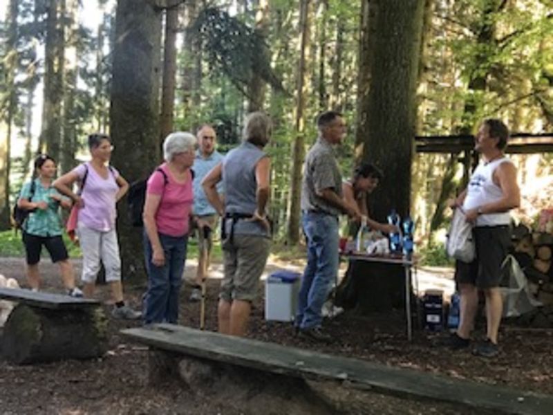 Am Freitag 9. August 2019, 14.00 Uhr trafen wir uns wettertauglich ausgerüstet und gut beschuht auf dem Dorfplatz. Unsere zweite Grenzwanderung ging entlang der Grenzen im Norden und Westen. Beim Aserplatz in der Schnat, durften wir uns mit Wurst und Brot, sowie Getränken stärken.