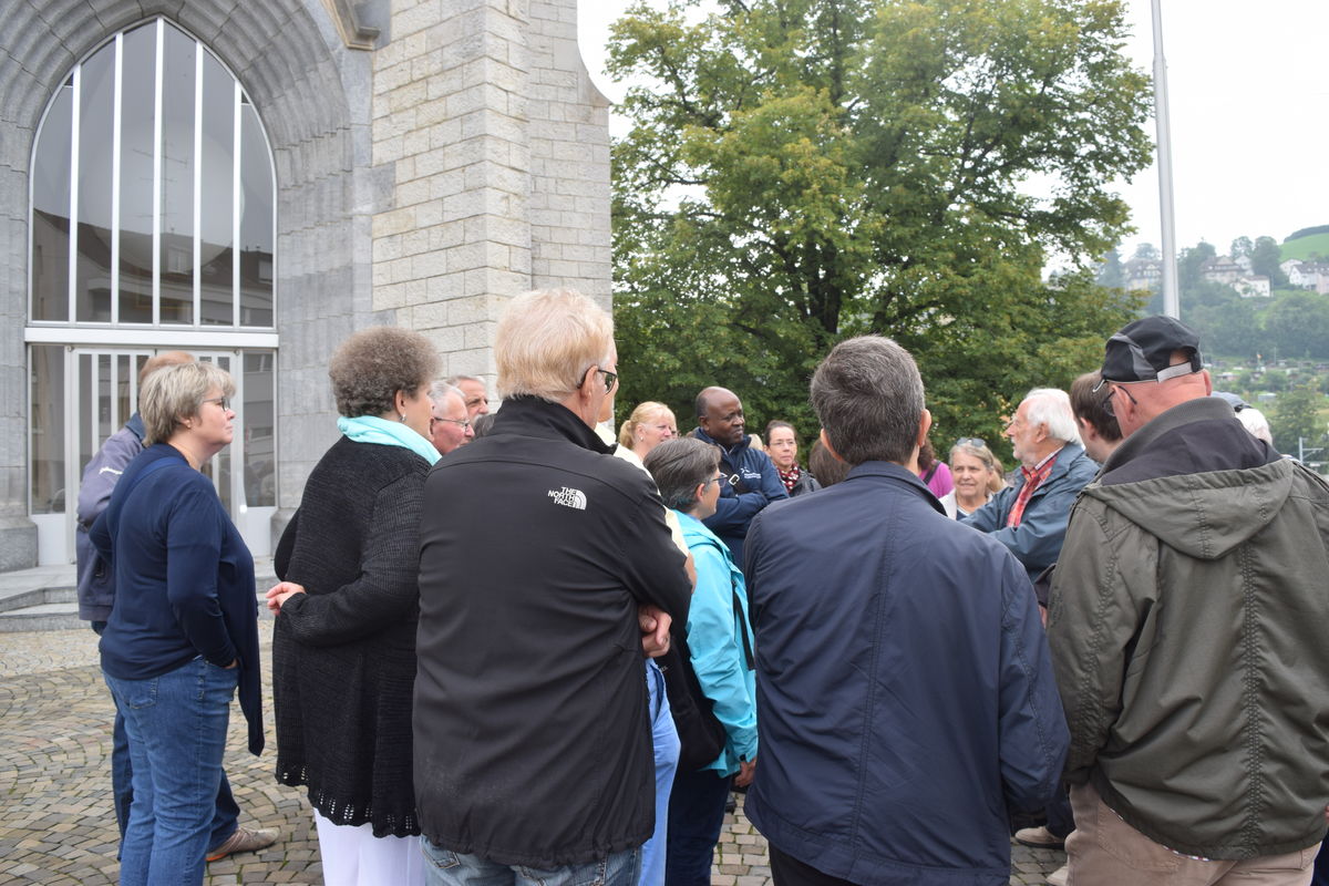 Walter Frei führte uns durch die nähere Umgebung der Kirche. Dabei konnte er uns interessante Zusammenhänge erschliessen. Mit interessanten Anekdoten wurde der Vortrag abgerundet.