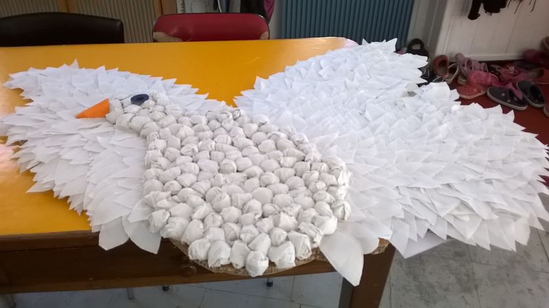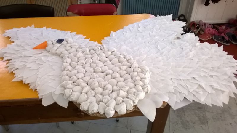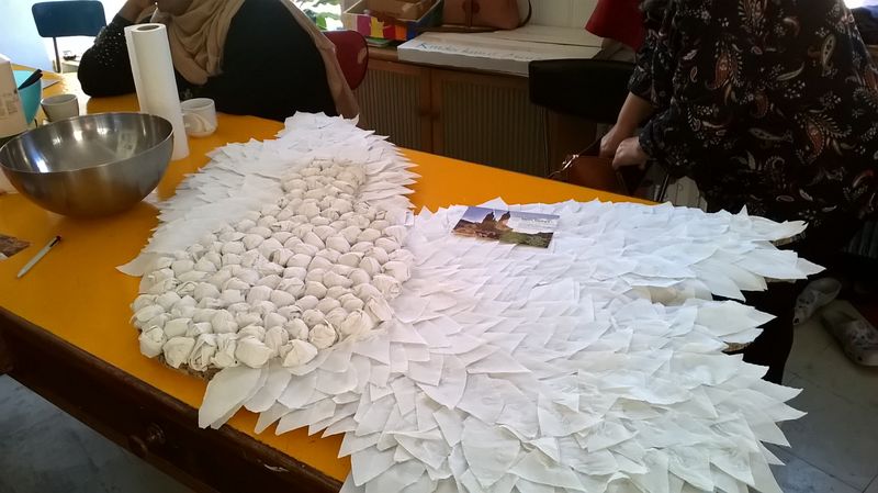Die Frauen des internationalen und interreligiösen Frauentreffes FrauenLachen wollen mit einer selbst kreierten Friedenstaube als Symbol des Friedens zur Feier beitragen.