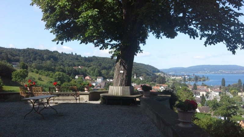 Hoch über dem Untersee mit wunderschöner Aussicht auf die Ufer der benachbarten Höri, der Insel Reichenau, auf die Vulkankegel des Hegau und den Schweizer Bodensee, liegt das schöne Schloss.