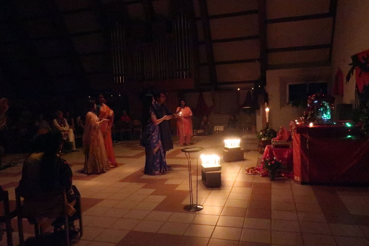 Auch in diesem Jahr hat die hinduistische Community der Gruppe "Interreligiöses Gebet Halden" ihr grosses Lichterfest "Divali" wieder in der Haldenkirche gefeiert. Ein Pracht an Farben, Klängen und Gerüchen hat uns nach Indien entführt. Durch Rituale und kurze Erklärungen wurden die Bedeutung und Feierformen von Divali veranschaulicht und erfahrbar gemacht. Und auch tatsächlich war Indien beim Divali sehr konkret präsent: eine berühmte Bollywood-Tanzformation war zu Gast und zeigte ihr Können.