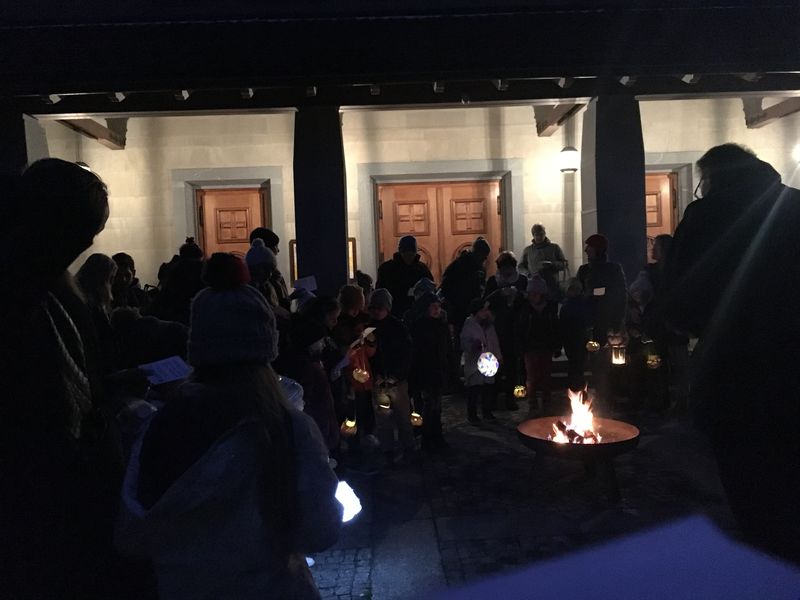 Mit einer Präsentation zur Martinsgeschichte und mit Martinsliedern stimmten wir uns im Atrium der Dreifaltigkeitskirche ein. Anschliessend trugen wir das Licht zum Pflegeheim Heiligkreuz, um dort miteinander zu singen und den Bewohnern unsere schönen Räbenliechtli zu zeigen. Danach ging’s zurück ins Pfarreiheim, wo sich alle mit Suppe, Wienerli und Kuchen stärken konnten.