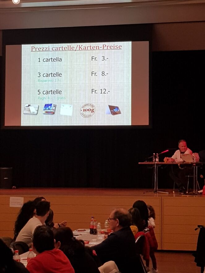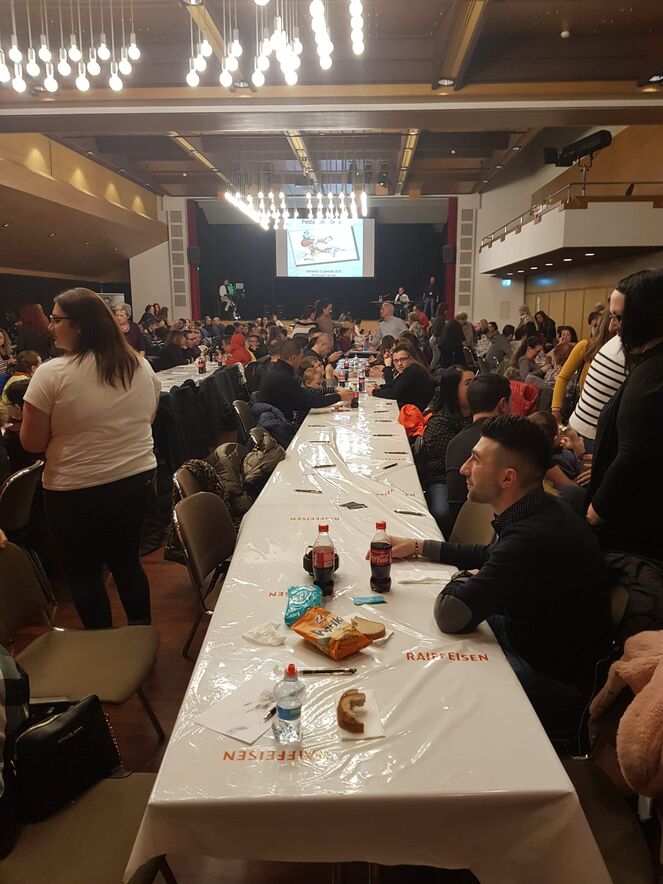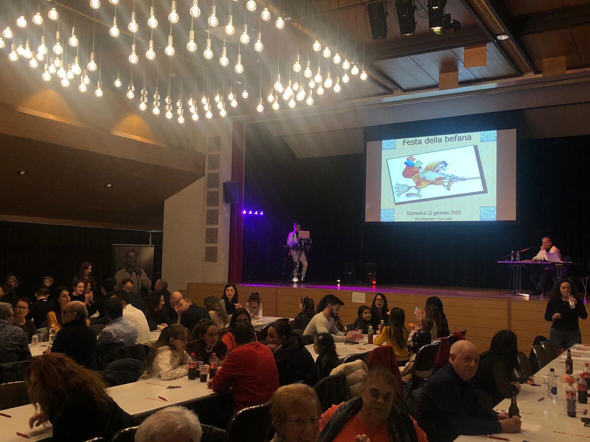 Stadthofsaal di Rorschach gremito da più di 600 persone per la Grandiosa Festa di Beneficenza della Befana 2020.
