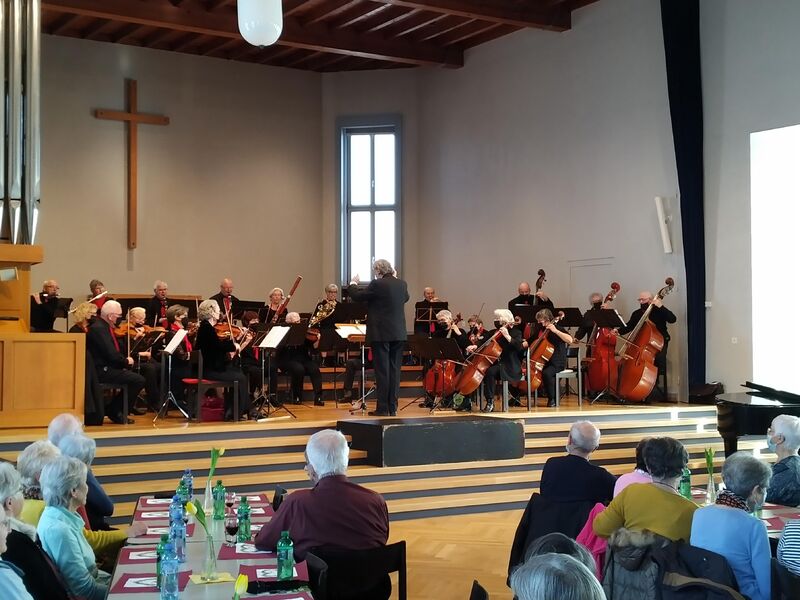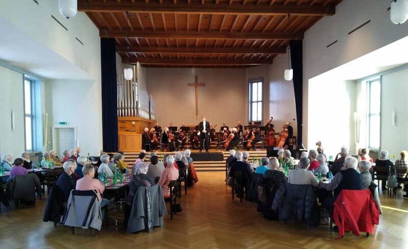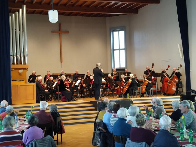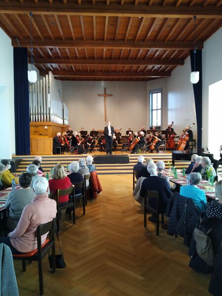 Zum Auftakt des Programms 60plus im Westen fand am 19. Januar 2022 im Kirchgemeindehaus Lachen das traditionelle Neujahrskonzert mit dem Senioren Orchester St. Gallen statt. Dirigiert wurde das Konzert durch Francisco Obieta und er führte auch auf unterhaltsame Art und Weise durch das Programm. Für die Gäste und für die Musikerinnen und Musiker gab es Laugenbrezel, Mineral und Wein.