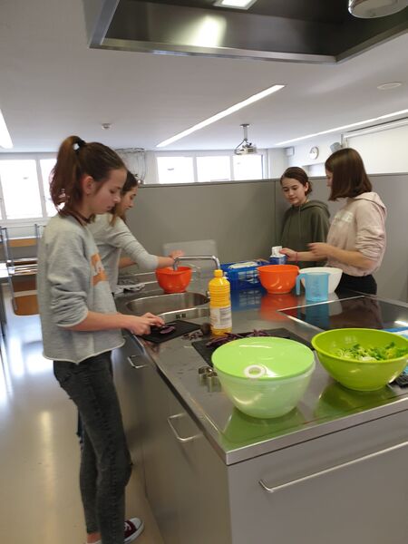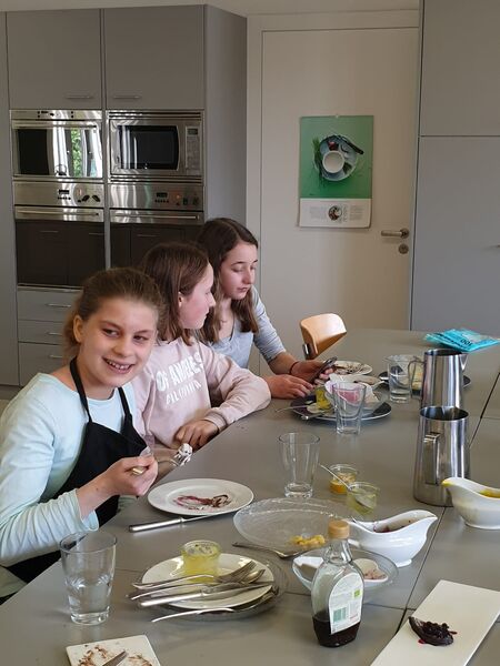 Nach dem gemeinsamen Kochen unter hygienisch verschäften Bedingungen wurden die Kriterien: Kreativität, Buntheit, Teamwork (auch Planung und Umgang mit dem Material) und Geschmack bewertet. Die knappen Siegerinen durften als erstes ihren Preis in Empfang nehmen.
