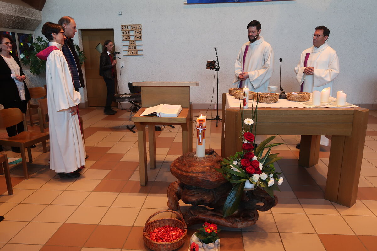 Am Sonntag, den 15. März, haben wir uns in einem bunten Gottesdienst von unserer Pfarrerin Birke Horváth-Müller gebürend verabschiedet. Vertreter*innen von den vielen verschiedenen Gruppierungen der Halden waren anwesend, um ihr für ihr beherztes und engagiertes Wirken "Danke" zu sagen. Einen fulminanten Abschluss des Festgottesdienstes boten Norbert Schmuck an der Orgel und Alexander Sennhauser am Klavier. Sie spielten das Concerto für 2 Orgeln von Giovanni Bernardo Lucchinetti. Es war nicht nur für Birke eine Überraschung.