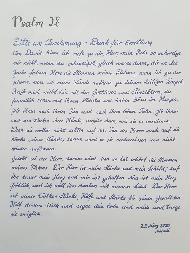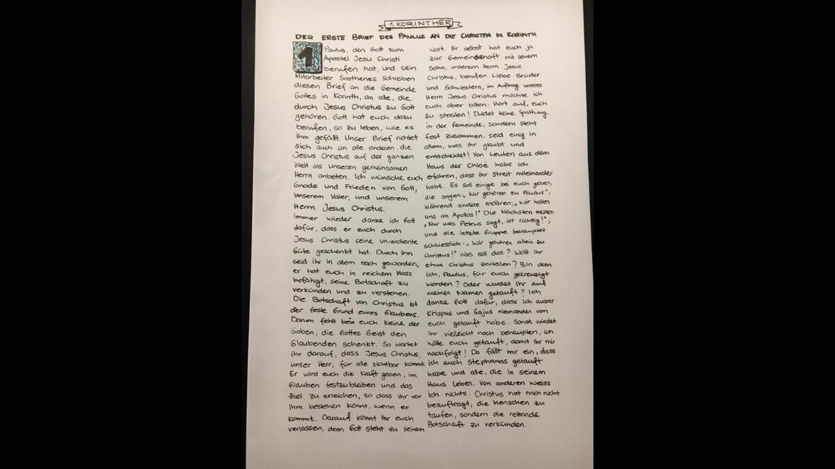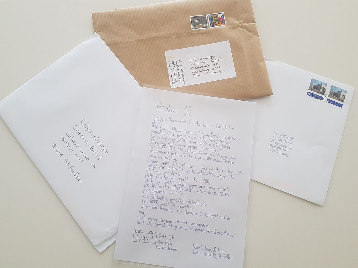 Sechs Wochen nach dem Projektstart der St.Galler Corona-Bibel sind schon ca. 90% aller Kapitel der Bibel an Schreiberinnen und Schreiber vergeben. Das Entgegennehmen und Sortieren der über 1000 Zuschriften sowie das Überprüfen, ob alle gebuchten Kapitel auch wirklich geschrieben wurden, wird das Corona-Bibel-Team fordern.