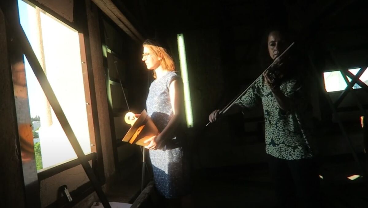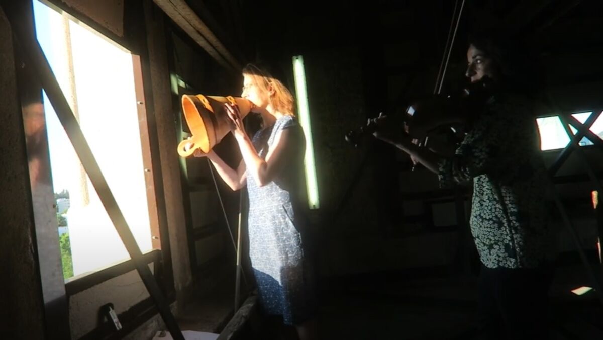 Am letzten Sonntagabend kam nochmals eine ganz neue Segensform zu unserer "Segensgeschichte" dazu: die Ann-Katrin Gässlein von der Cityseelsorge sang, von der Violinistin Illaria Sieber-Pedrotti begleitet, den Abendsegen nach Worten von Jörg Zink über St. Gallen und die Welt, vom Turm der Kirche St. Maria Neudorf aus.