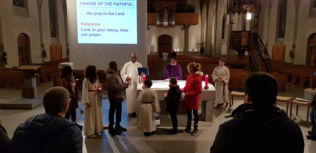 Der Gottesdienst in der English Speaking Community in der Pfarrei St. Otmar ist immer ein familiärer Anlass. Insbesondere der Weihnachtsgottesdienst ist dabei ein besonderes Erlebnis von Gemeinschaft und Familie