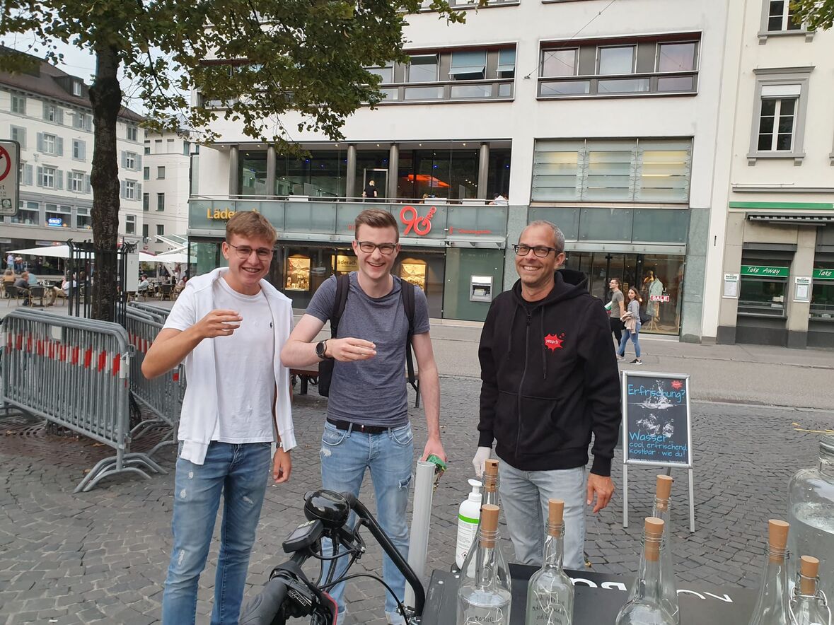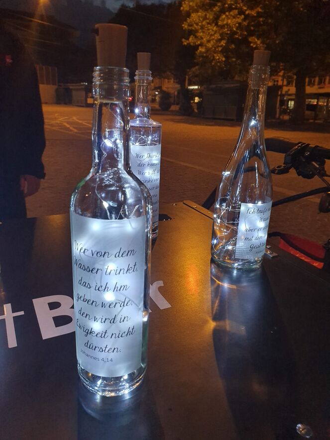 Wasser - cool, erfrischend, kostbar - wie du! Mit dieser Botschaft und einem erfrischenden Schluck Wasser im Eiswürfelglas überraschten die Jugendarbeitdenden des Yesprit Teams junge Menschen auf dem Weg in den Ausgang. Es kam dabei zu vielen erfrischenden kurzen Begegnungen und Gesprächen.