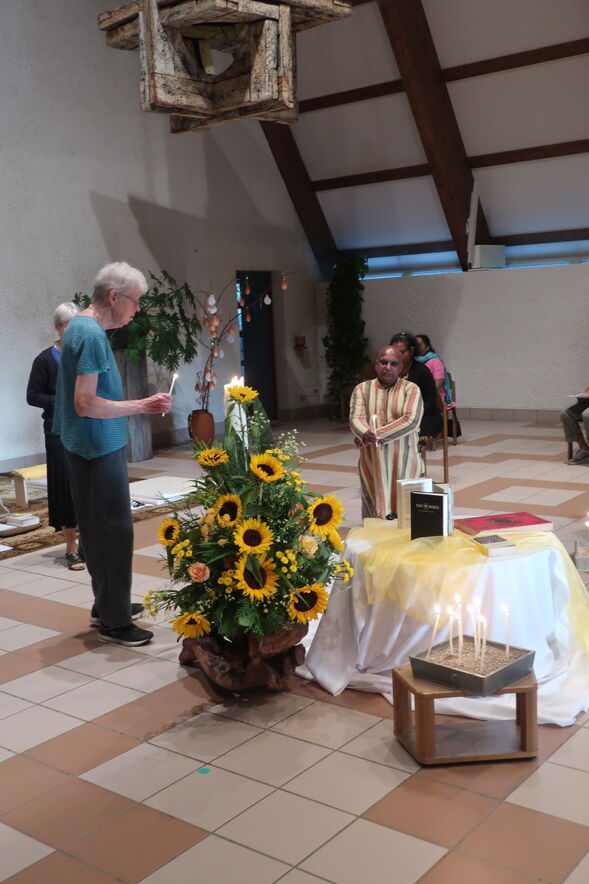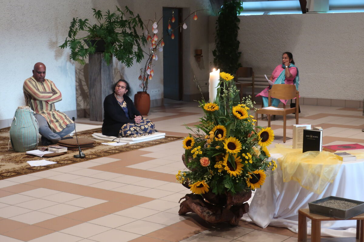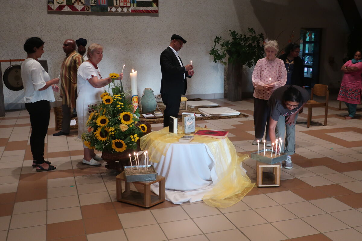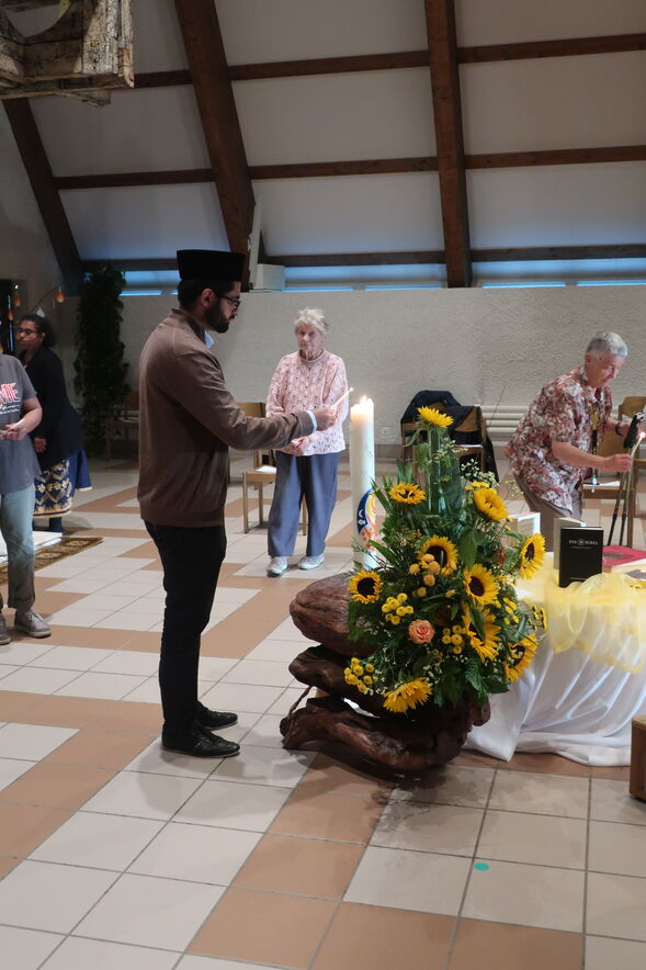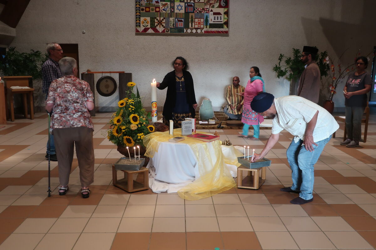 Gläubige verschiedenster religiöser Traditionen haben sich am Samstag-Abend wieder einmal in der Haldenkirche getroffen, um zu beten. Im Mittelpunkt des Interreligiösen Gebets stand die Frage, was uns die Schöpfung lehrt. Ein Aspekt, der spirituell bedacht wurde, war der Umgang mit der Natur, ein anderer die Demut angesichts der Fragilität des menschlichen Seins und und ein dritter der, der Frage nach den Naturgesetzen und den Erkenntnissen aus den Naturwissenschaften.